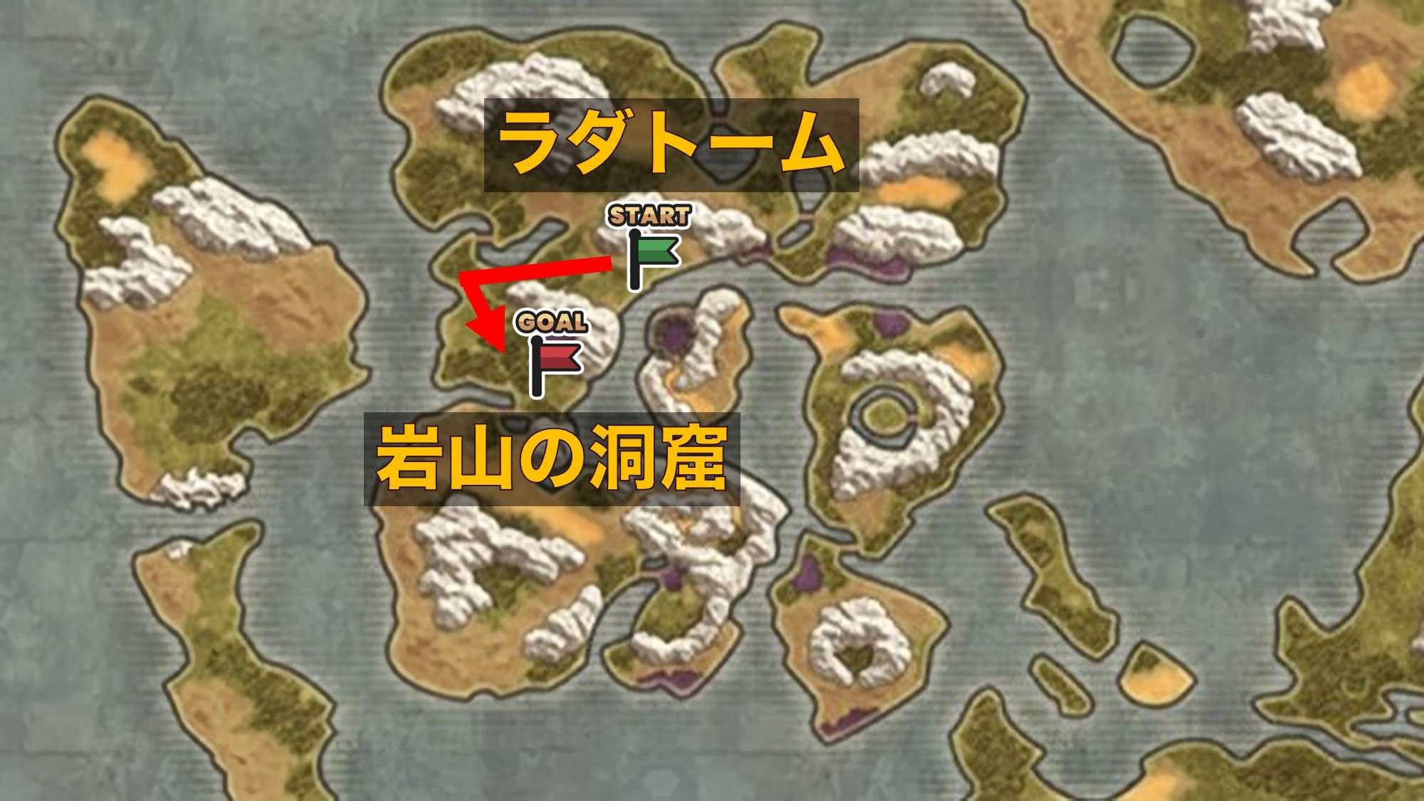 ラダトームで囚人に話しかけたら、岩山の洞窟へ向かいましょう。岩山の洞窟は、ラダトームから南西の位置にあります。