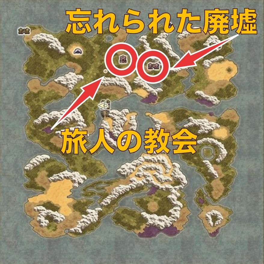 マイラに向かう際に「旅人の教会」や「忘れられた廃墟」などの建物があるため、訪れておきましょう。一度訪れておけばキメラのつばさの移動先として登録されるため再訪が楽になります。
