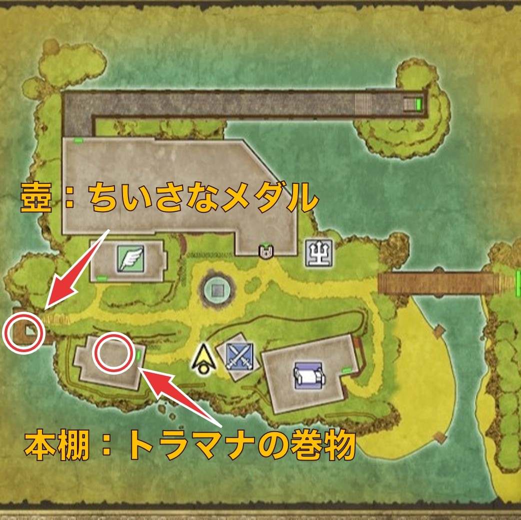 ガライには、西側に「ちいさなメダル」と「トラマナの巻物」があるので回収しましょう。