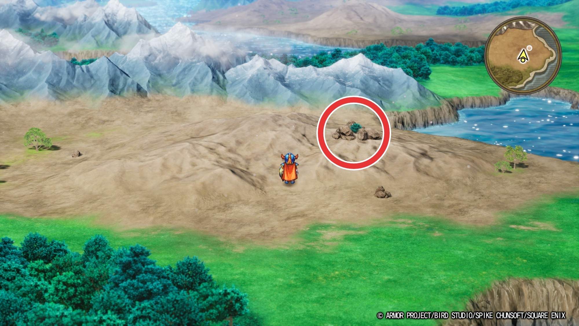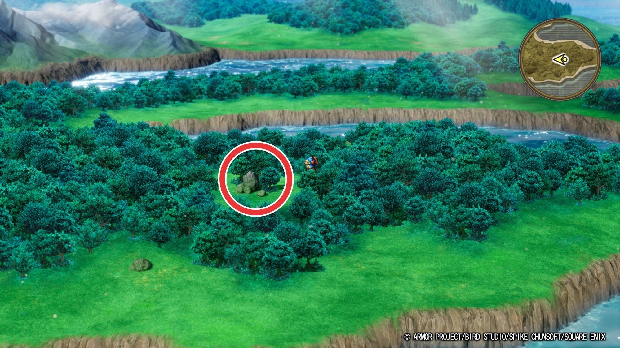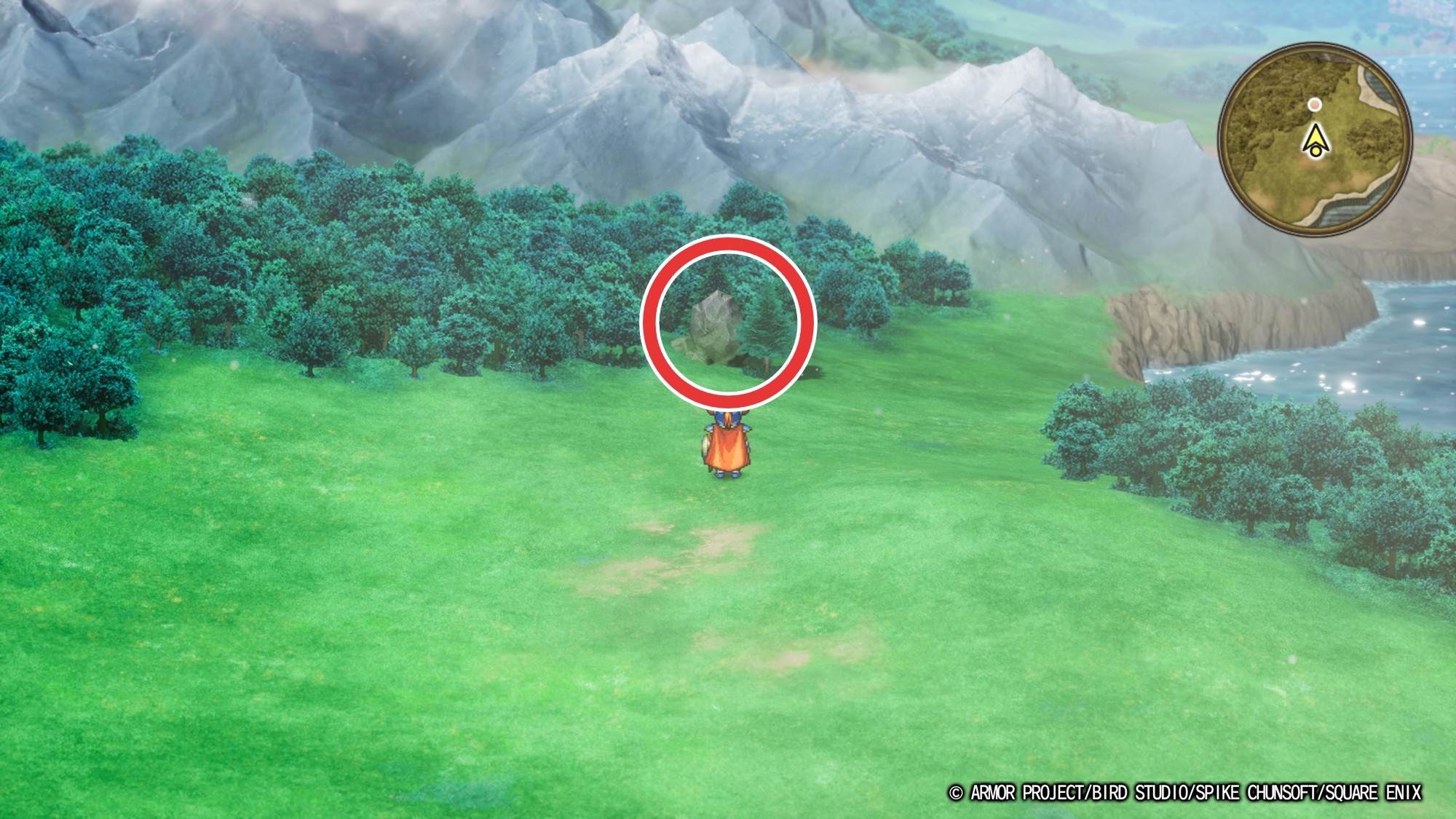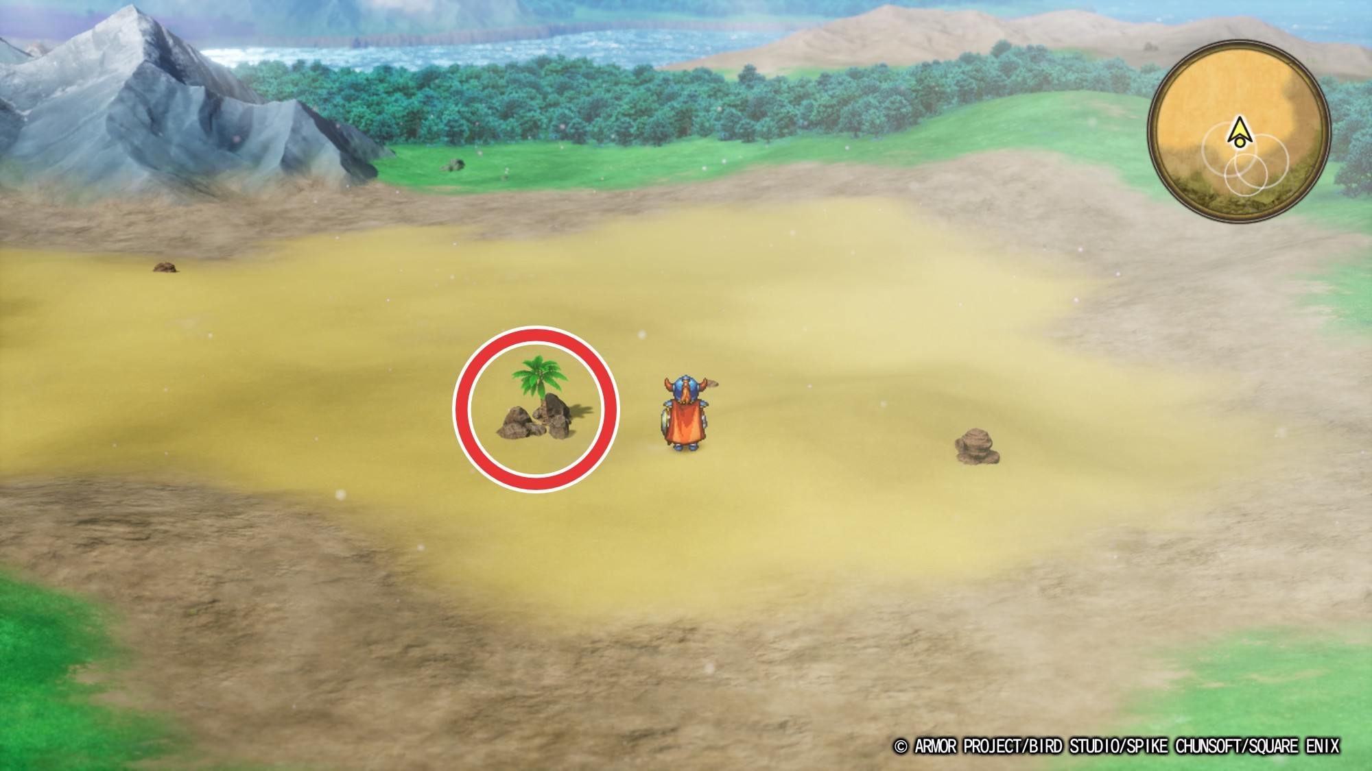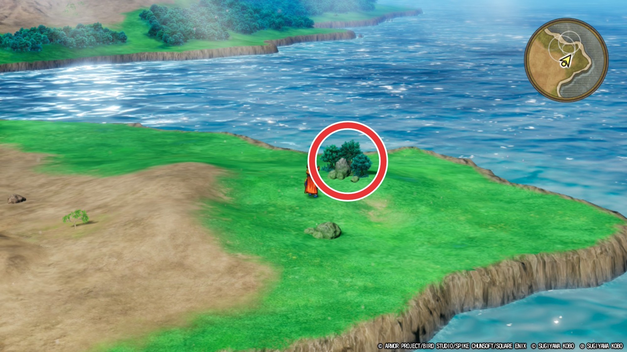 ・ミラーシールド(宝箱) ・やまびこのぼうし (手前左の木の下) |