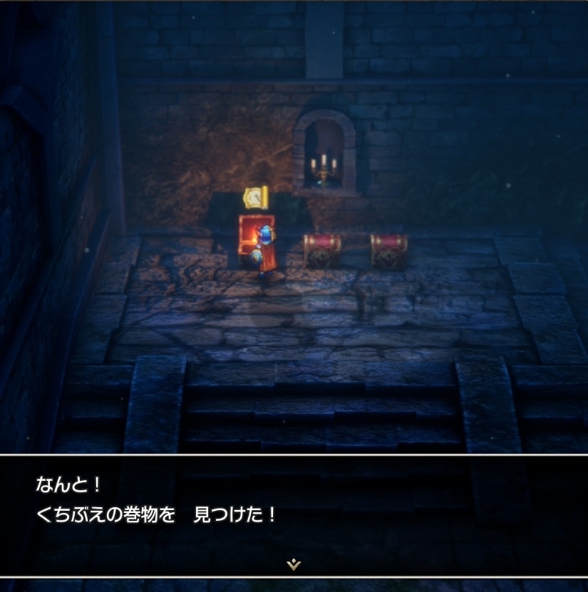 くちぶえの巻物は、ガライの墓地下1階にある宝箱から入手できます。ガライの墓に入るには、とうぞくのカギが必要です。とうぞくのカギは、ストーリーを進めてカンダタを倒すと入手できます。