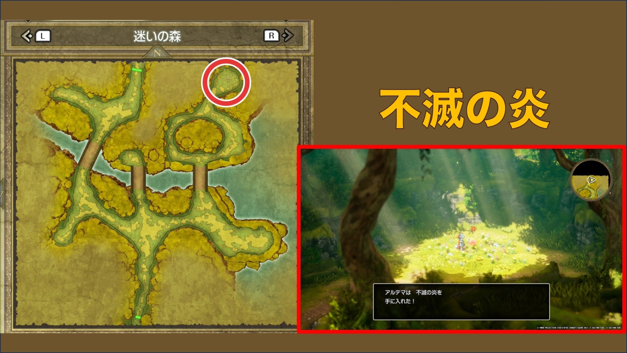 迷いの森では、不滅の炎を入手できます。不滅の炎は、太陽の紋章を入手するのに欠かせない重要なアイテムです。