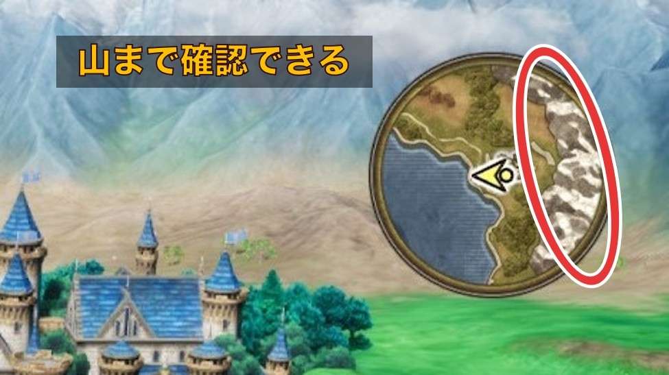 ミニマップ表示範囲は、画面設定でミニマップ表示範囲を「ひろい」に設定するとフィールドでのミニマップ範囲が拡大されます。ただし、街などではどちらの設定でも表示範囲が変わらない仕様です。