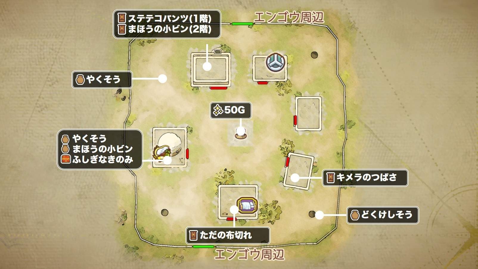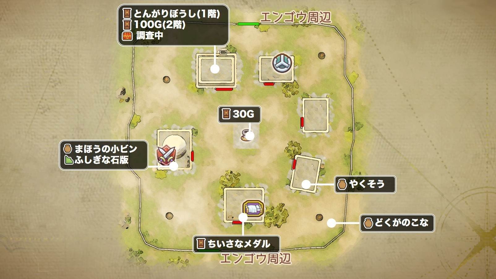 エンゴウの村の入手アイテムとマップ