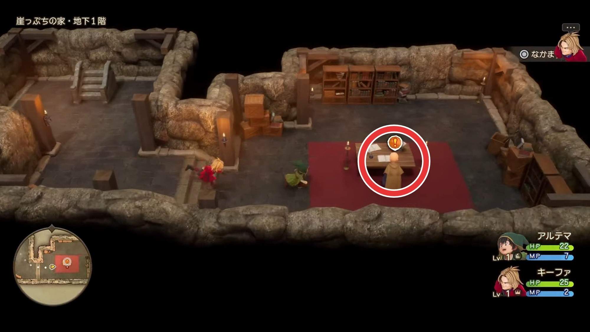 試練の間宝物庫に入るとイベントが発生し、影の石版守り2体との戦闘が始まります。主人公とキーファで同じ敵を攻撃して早めに頭数を減らしましょう。事前にグランエスタードを探索して「やくそう」を集めておくと安全です。