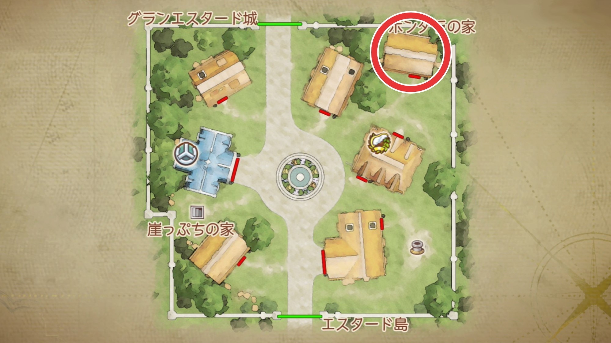 拡大する⑥ホンダラ家の側グランエスタードの城下町で、金色に光っているポイントがあるので調べてビンを入手しましょう。ビンは最大8本入手できますが、ストーリーを進めるには3本あれば十分です。