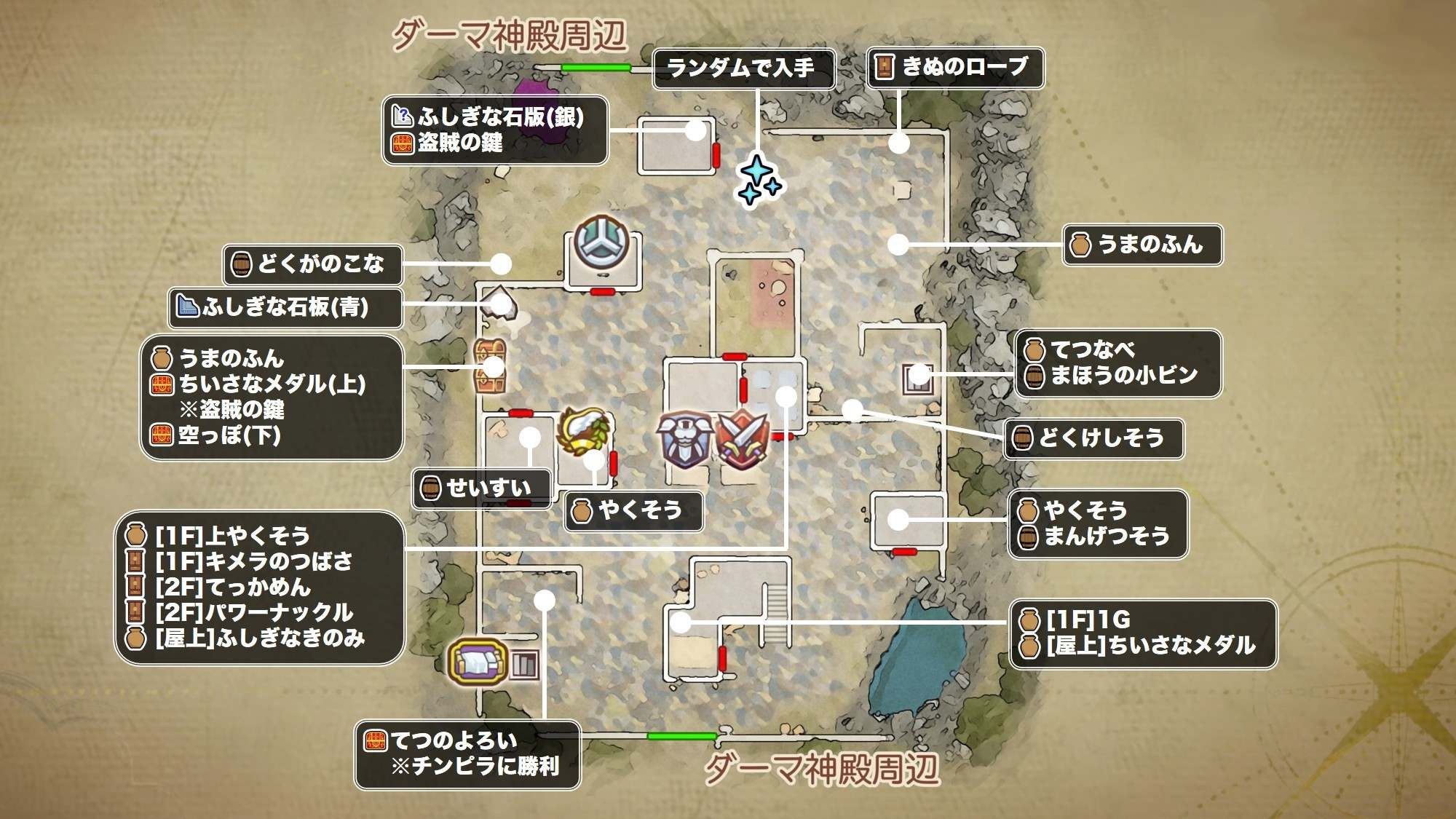 ふきだまりの町の入手アイテムとマップ