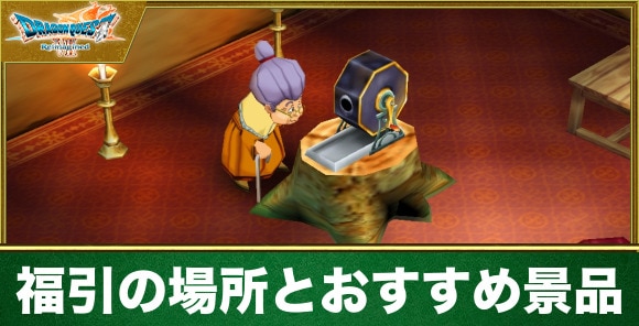 ドラクエ7リイマジンド(DQ7)の福引きの場所とおすすめ景品をご紹介。ドラゴンクエスト7リメイクの福引ができる場所や解放条件、ふくびきけんの入手方法、ふくびきの確率についても記載しています。