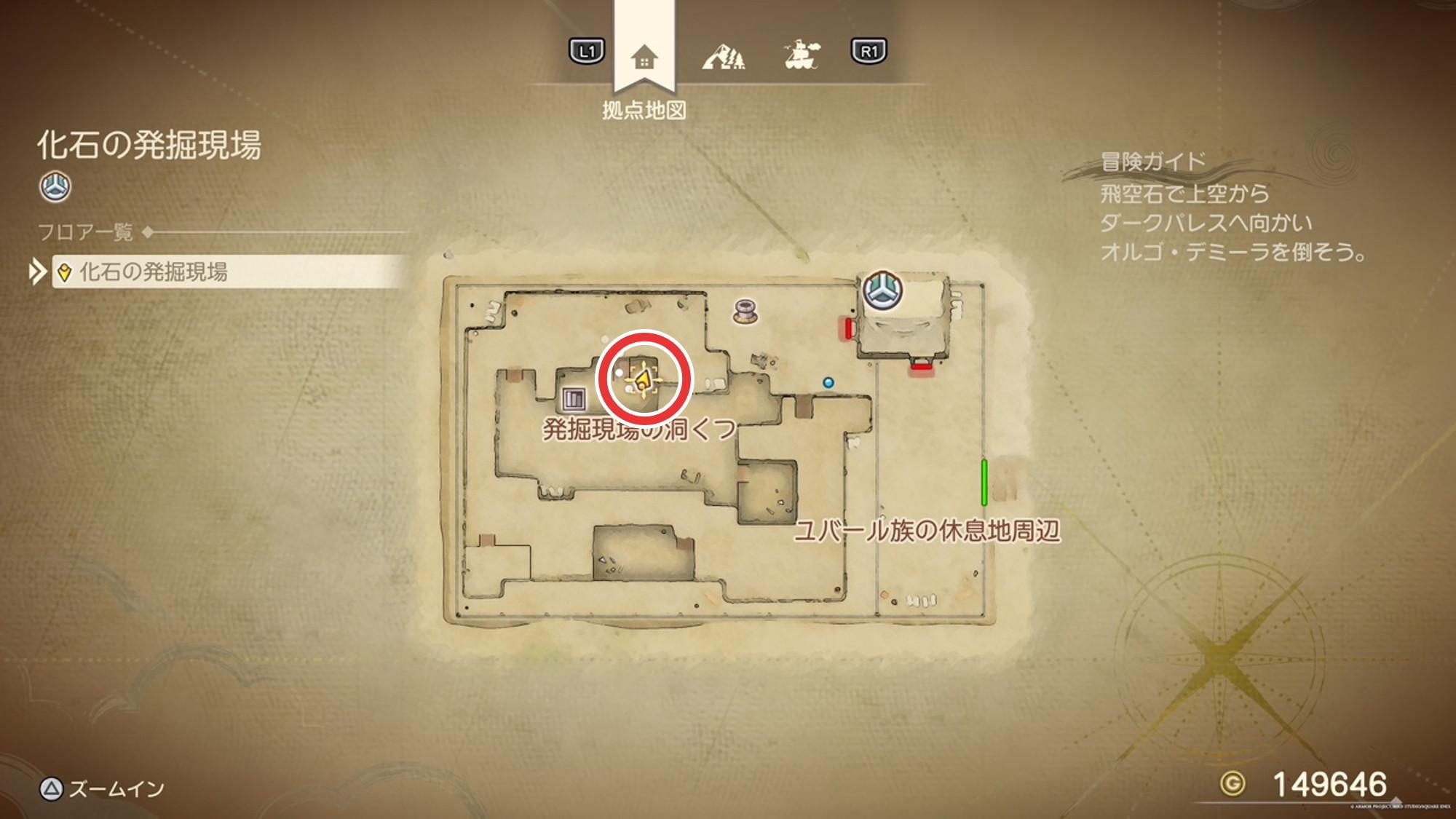 発掘現場の洞くつ|地下1階の北側の宝箱