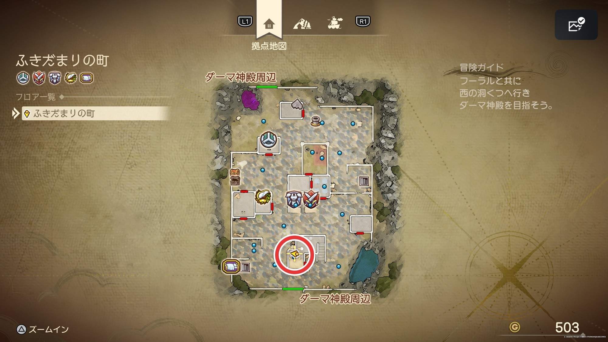 メダルマークが付いていない場所に未入手の小さなメダルがあるので、探しに行きましょう。「????」はまだ訪れたことがない場所にあるメダルです。