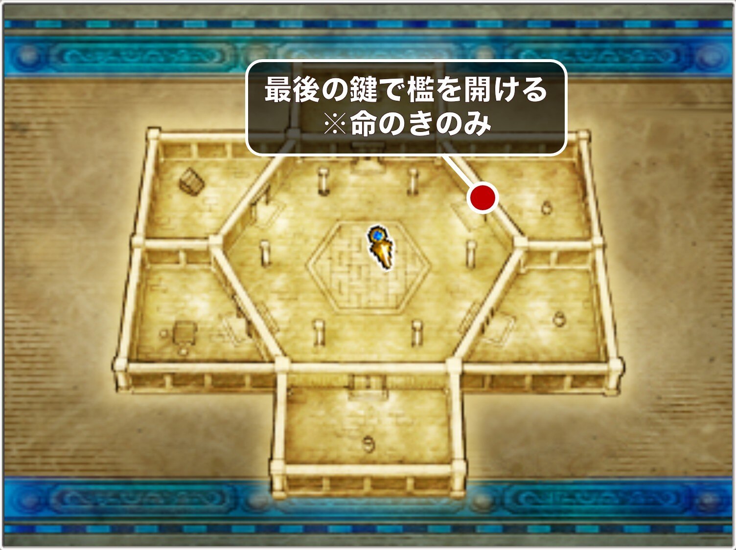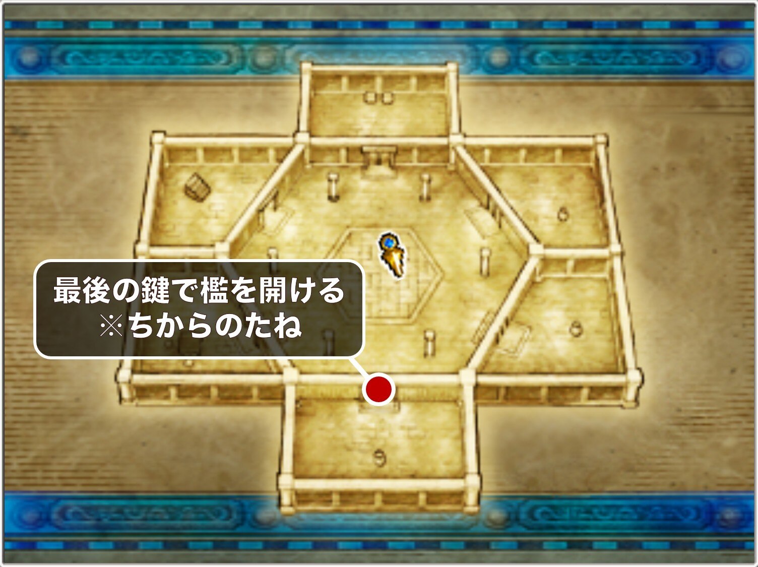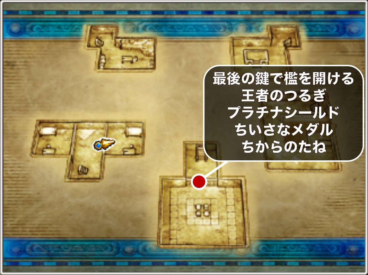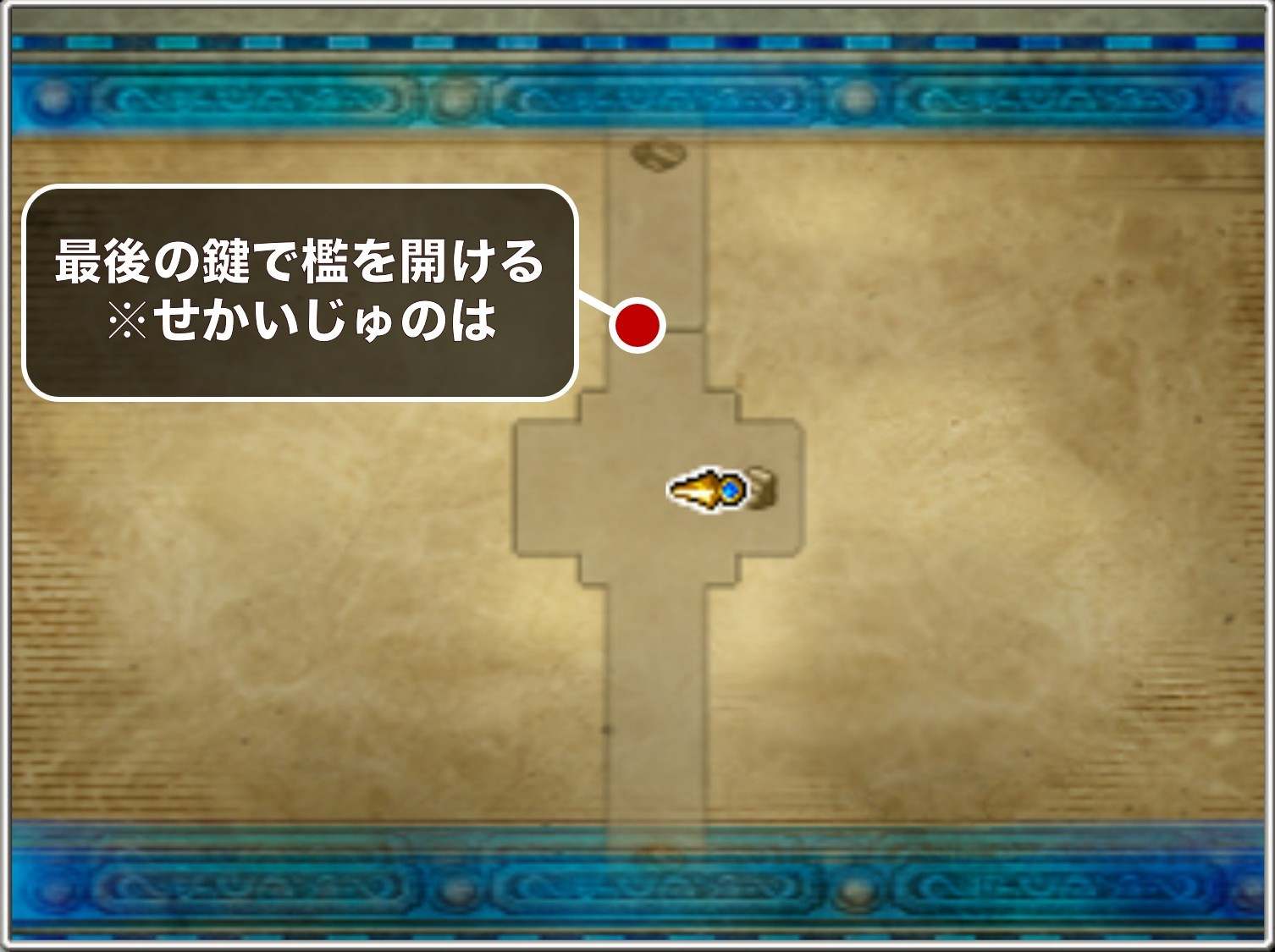 最後の鍵は、クリスタルパレスの地下1階の宝箱から入手できます。取り逃がすとダークパレスまで回収できないため、必ずクリスタルパレスから出る前に回収しておきましょう。