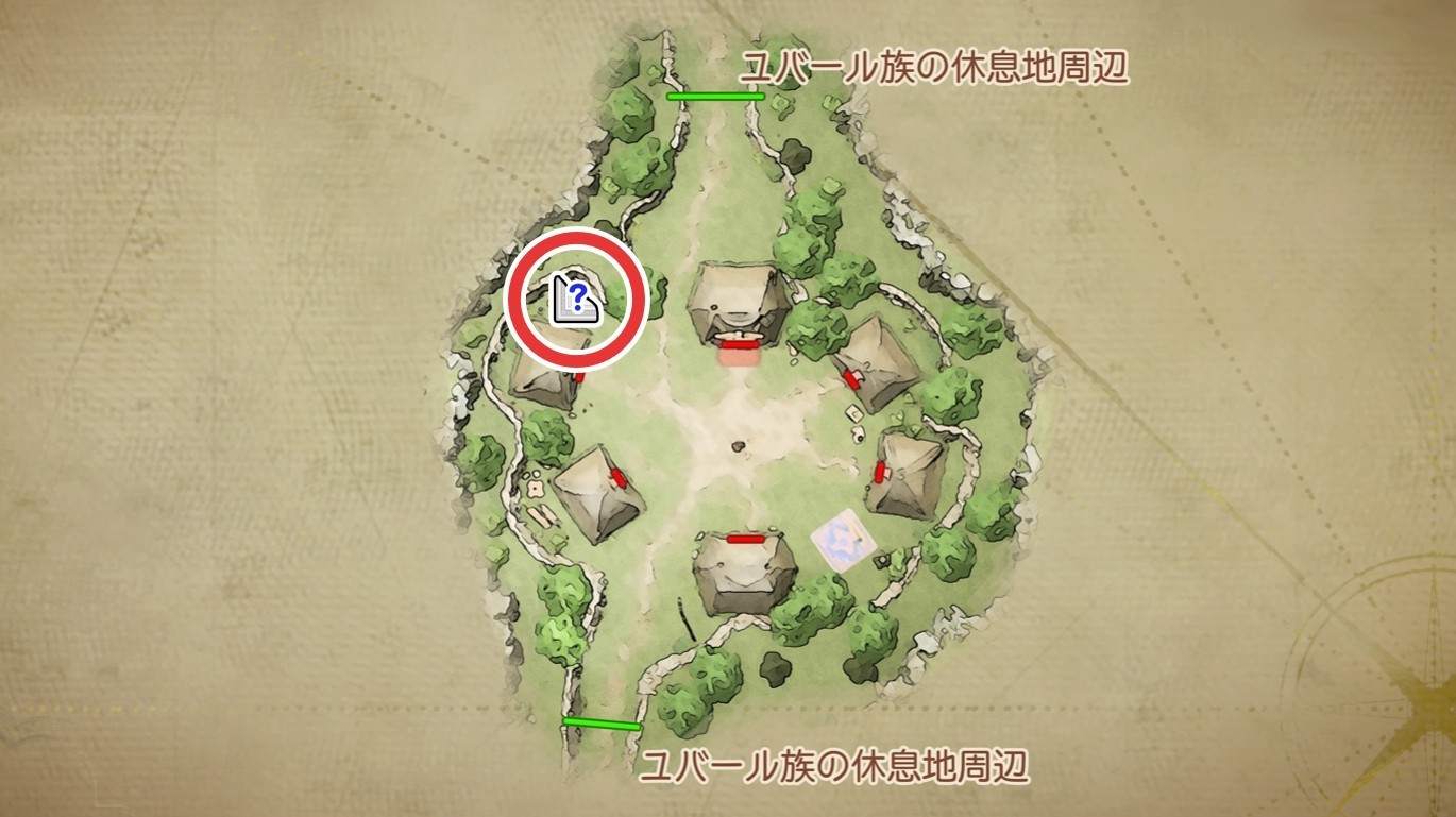 | ユバール族の休息地の北西のツボの近くで入手 | |