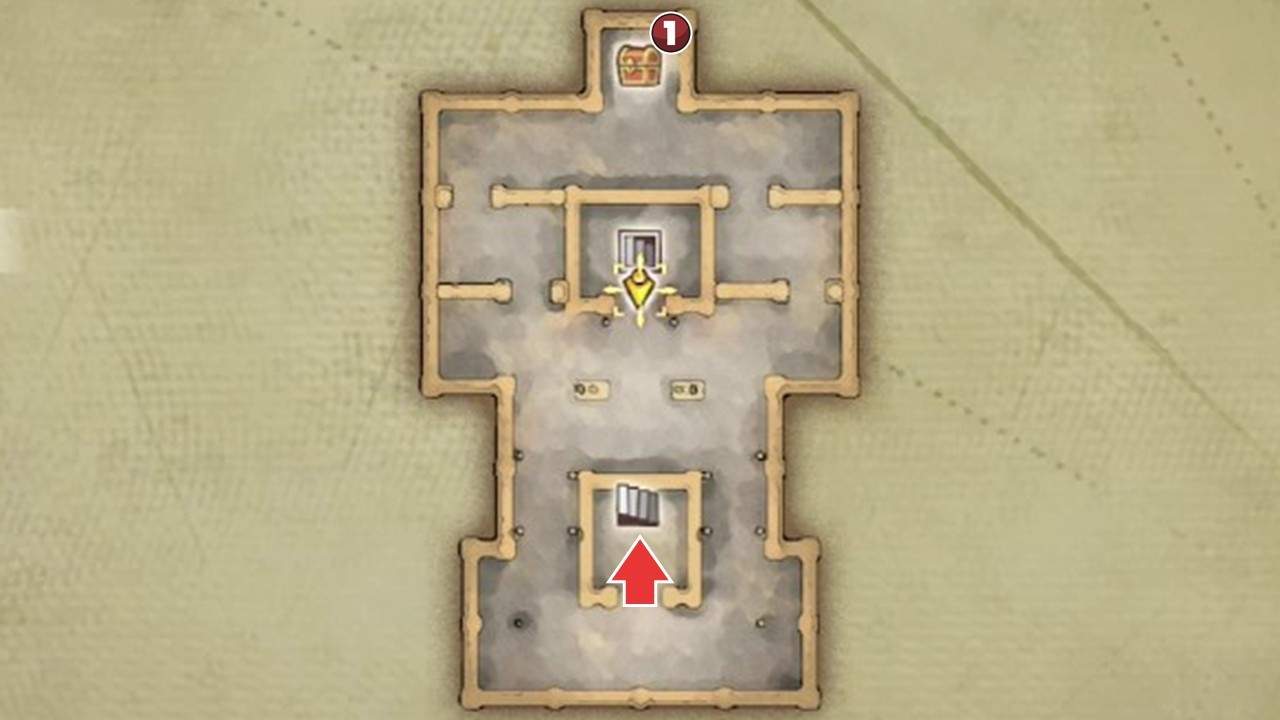 砂漠の村の北の建物に入り、1階にいる族長と話しましょう。