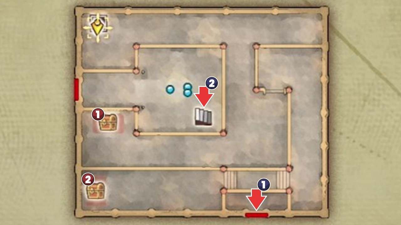 階段で砂漠の城の1階に上がり、ツボの間にあるふしぎな石版青を回収しましょう。