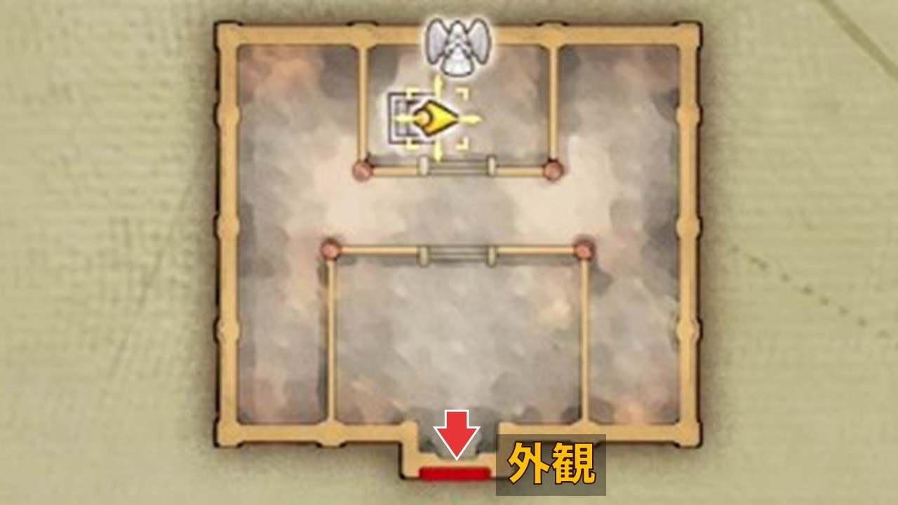 拡大する砂漠の城に入ったら、地下1階の砂漠の女王の部屋の奥でふしぎな石版灰を回収しましょう。初めて砂漠の城に訪れたタイミングから回収可能です。