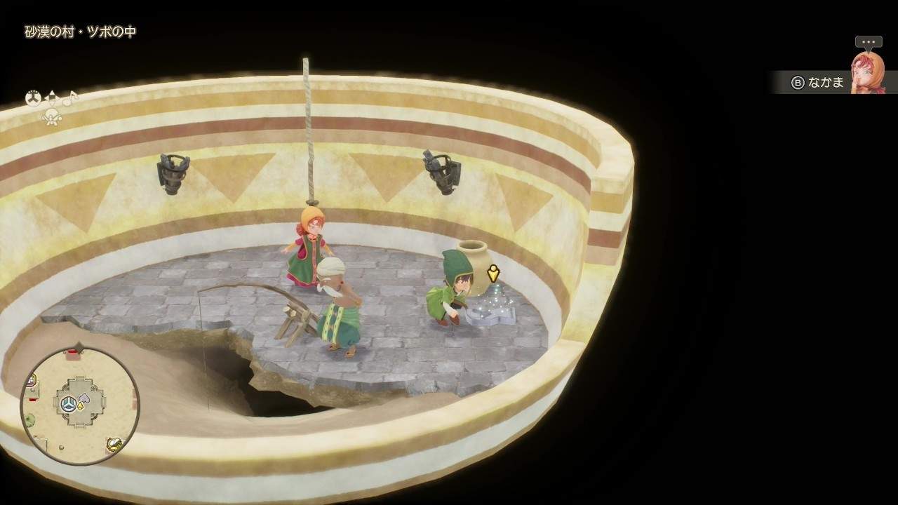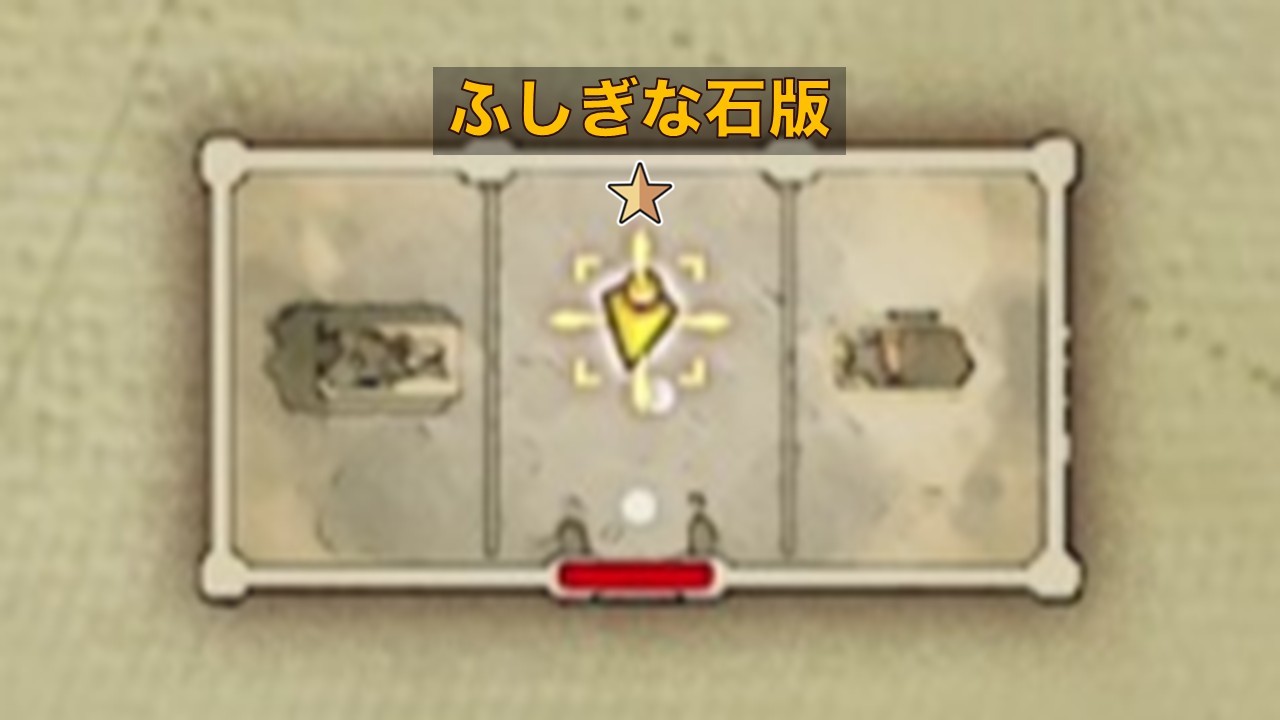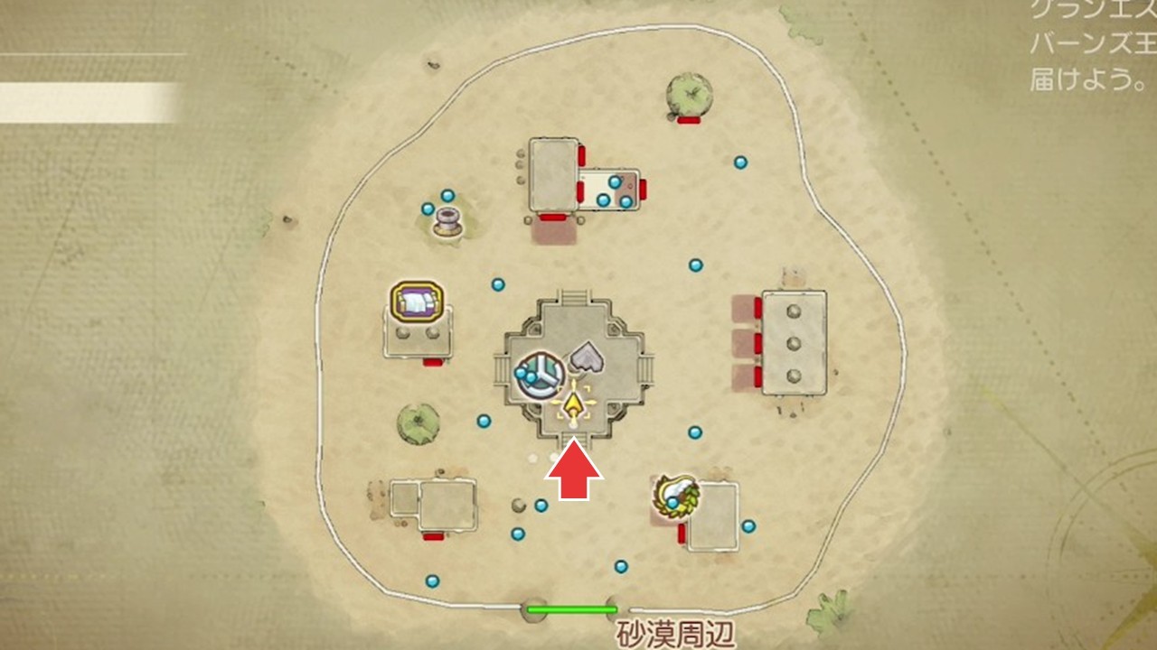 拡大する砂漠の村の中央のツボに入り、ふしぎな石版灰を回収しましょう。