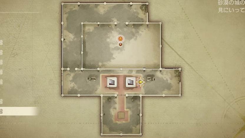 化石の発掘現場から出ると、自動で過去の砂漠の城に移動します。