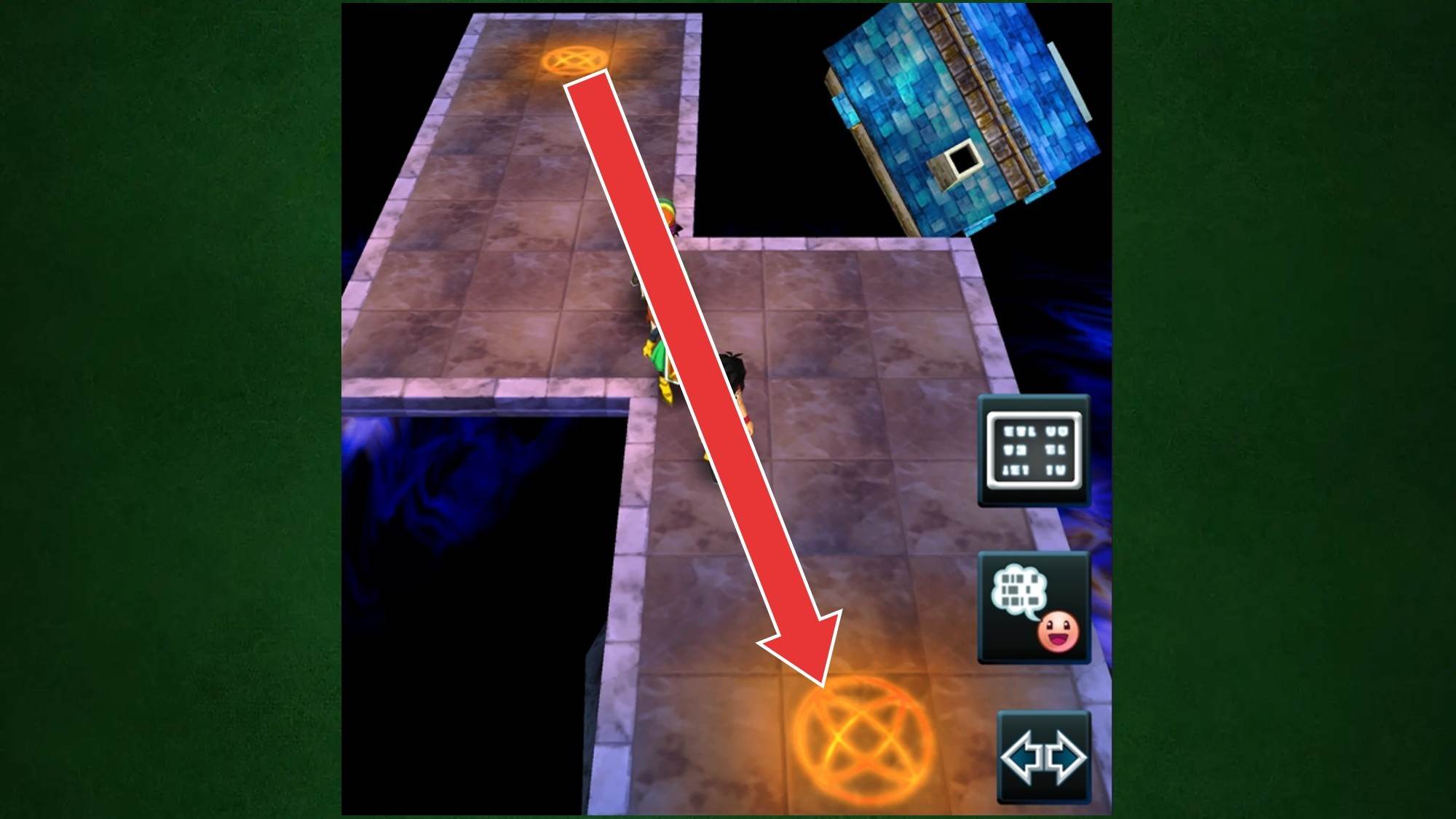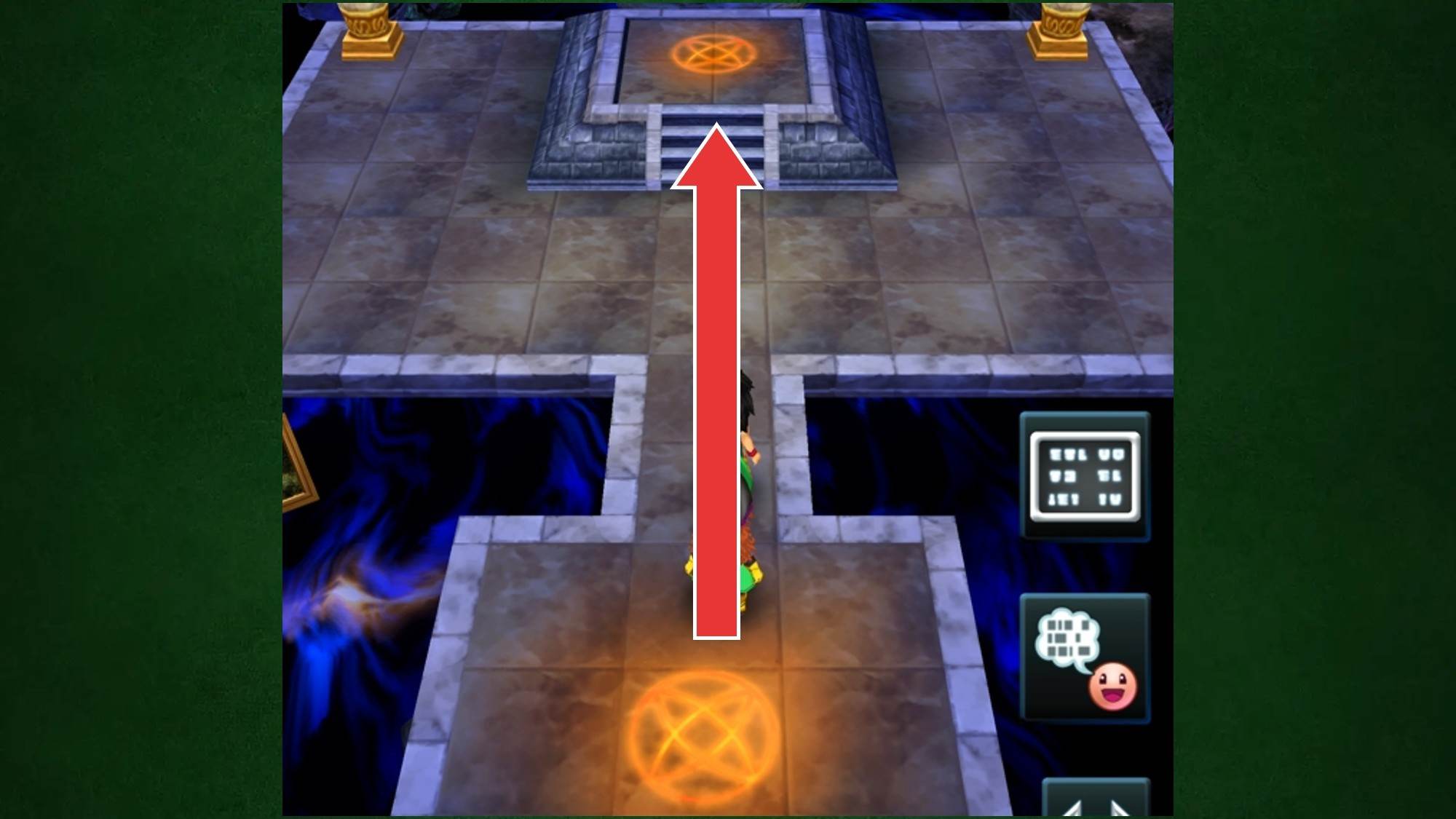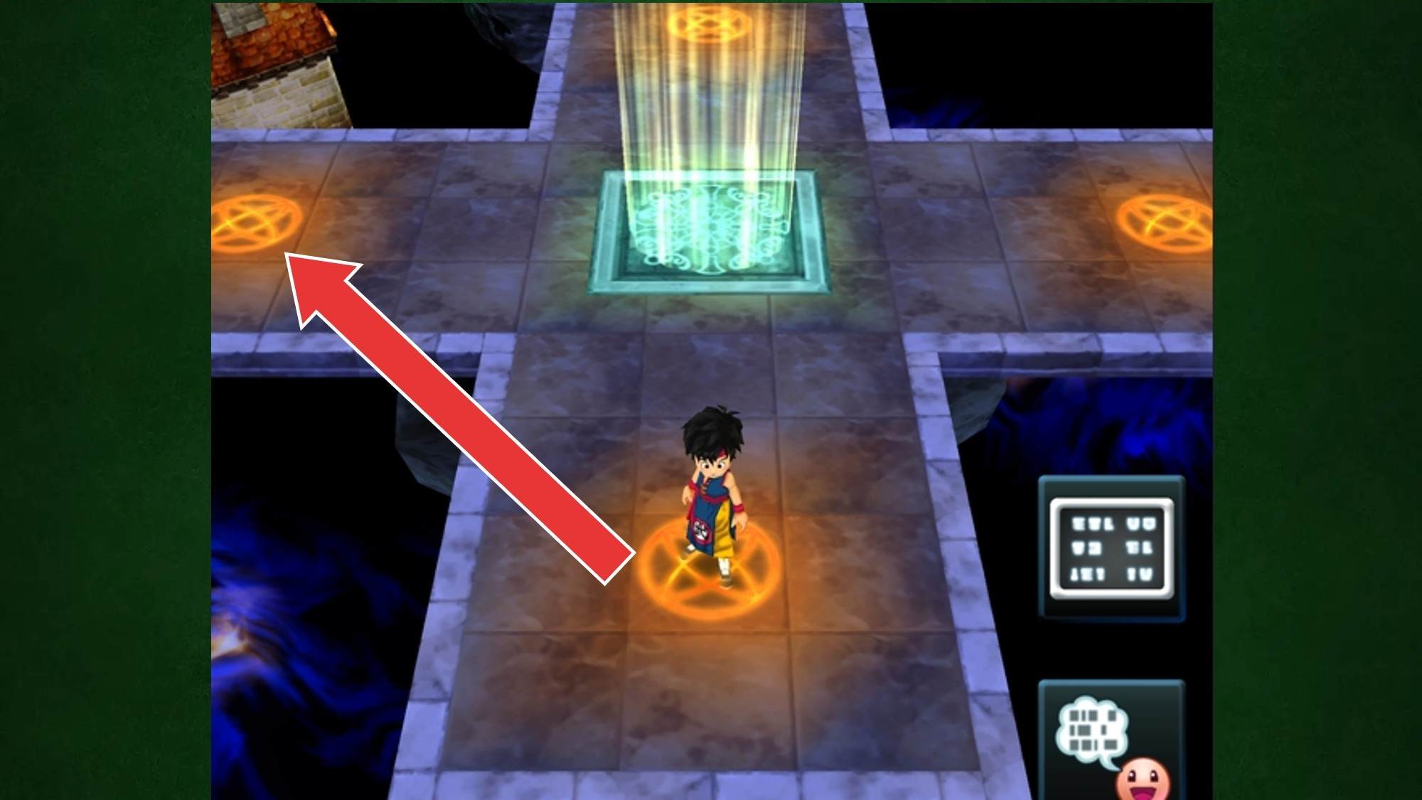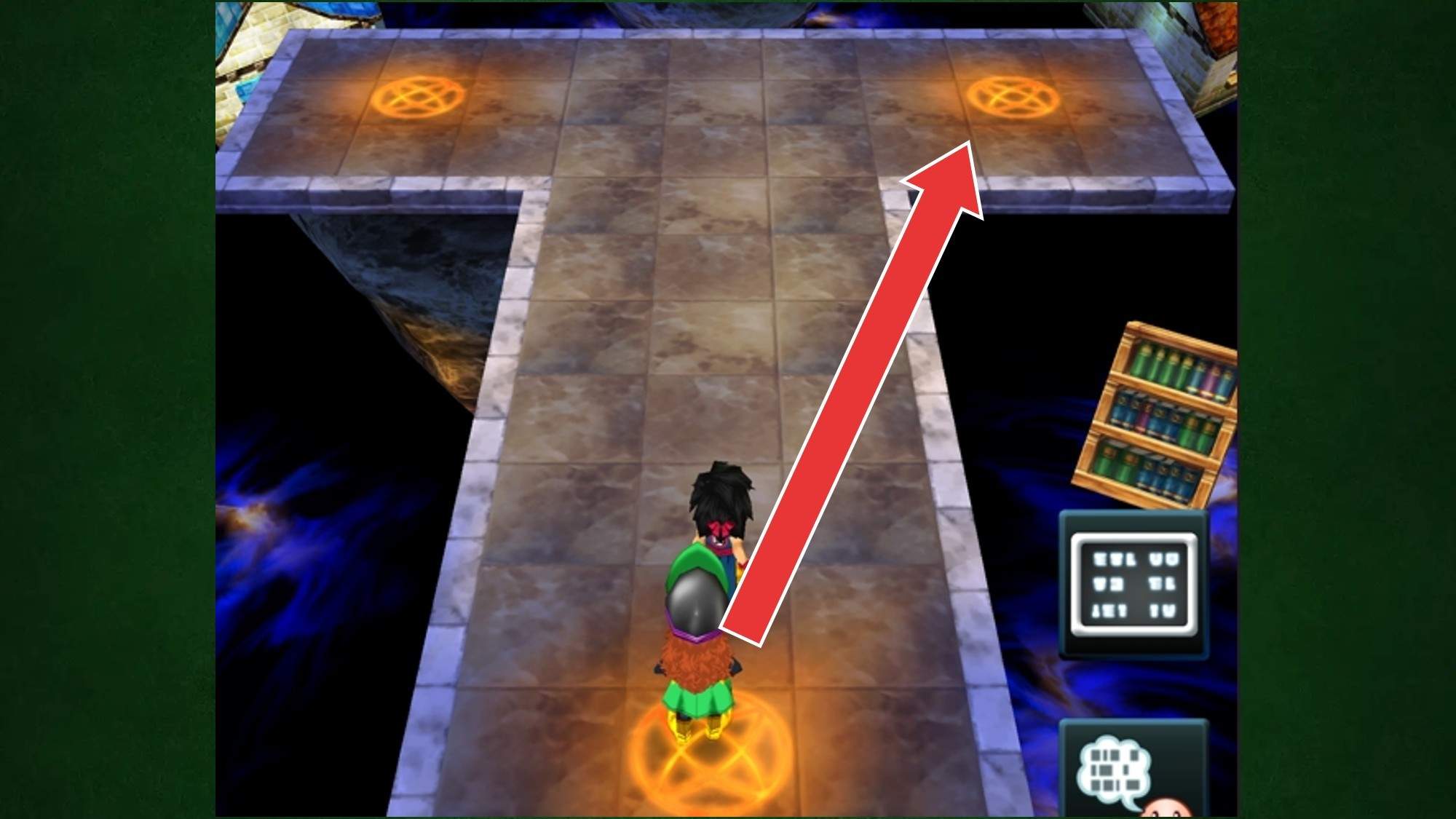 ちいさなメダルを回収したら、元のフロアへ戻って南側にある魔法陣へ進みましょう。魔法陣は段差から飛び降りた南側にあります。