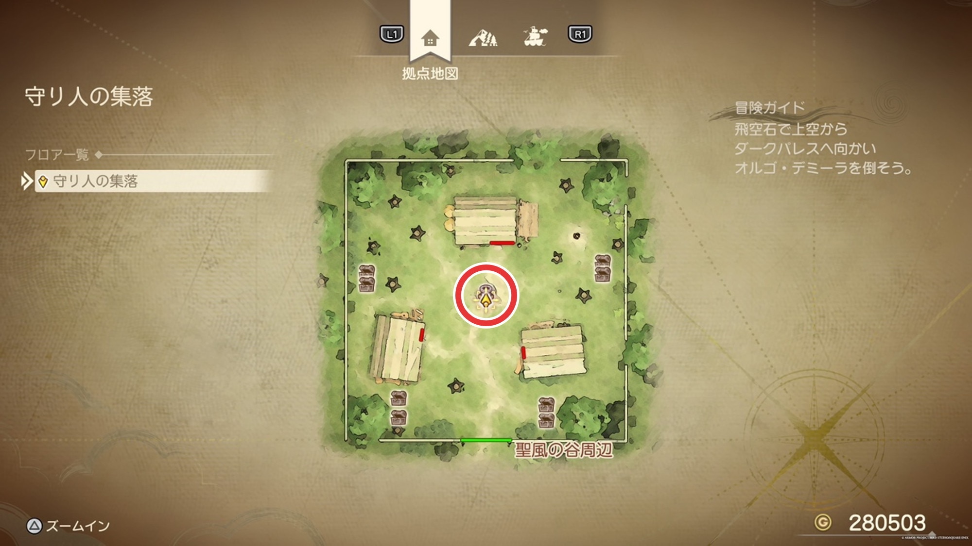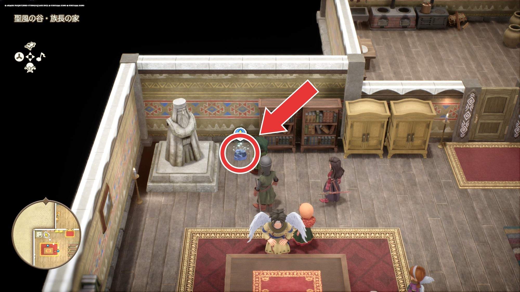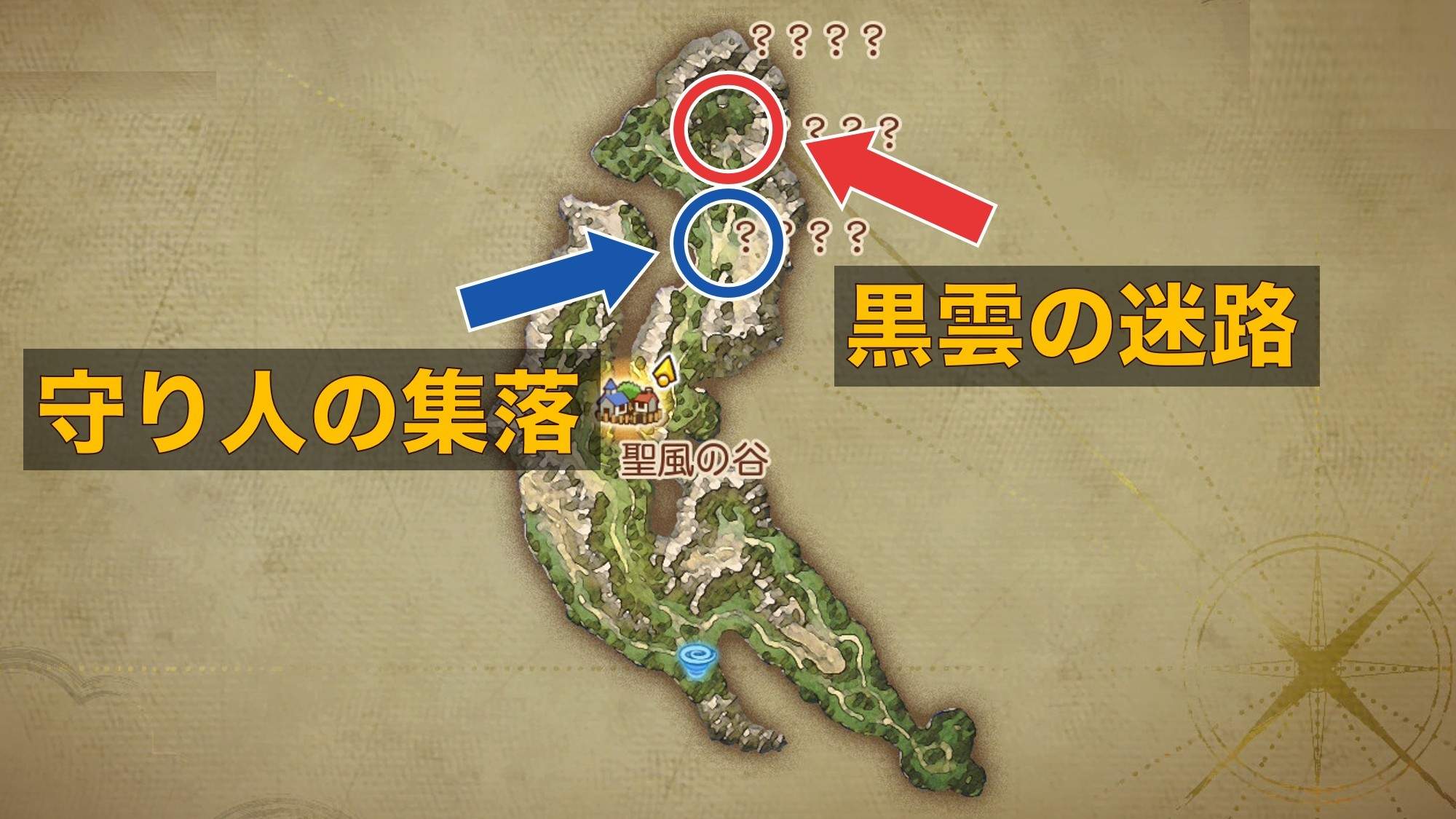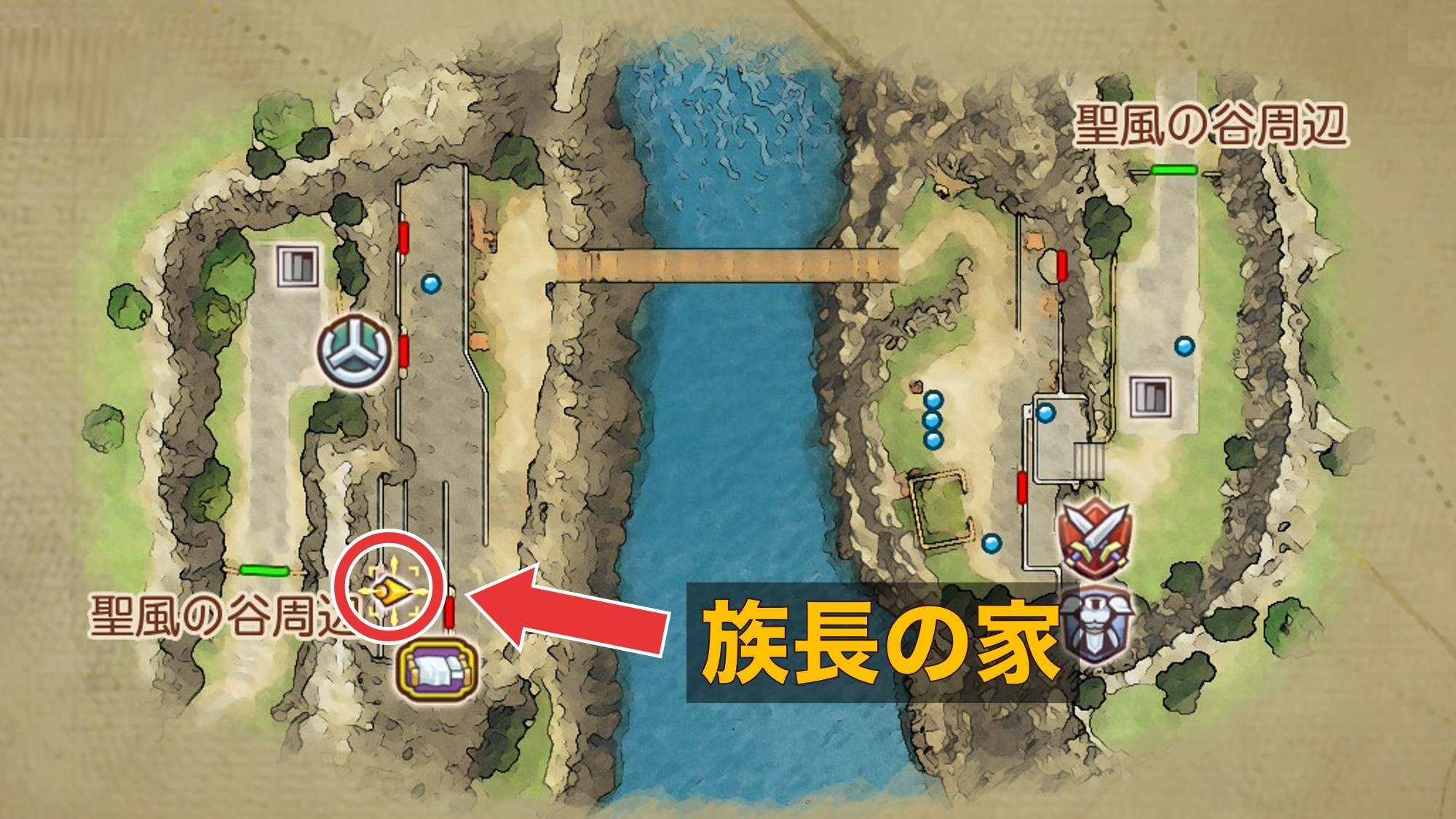 ヘルクラウダーを倒したら、聖風の谷の族長の家に戻りましょう。また、守り人の集落では、黒雲の迷路で取り逃した宝箱を開けられるため、聖風の谷に戻る前に立ち寄るのがおすすめです。