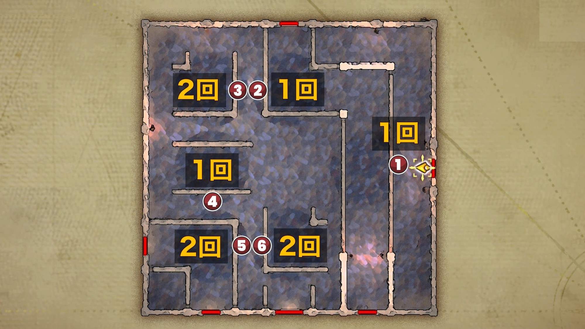 4階に着いたら、6個のスイッチを押して風の通り道を作りましょう。1回だけ押すスイッチと2回押すスイッチがあるため、押した回数を確認しながら進む必要があります。