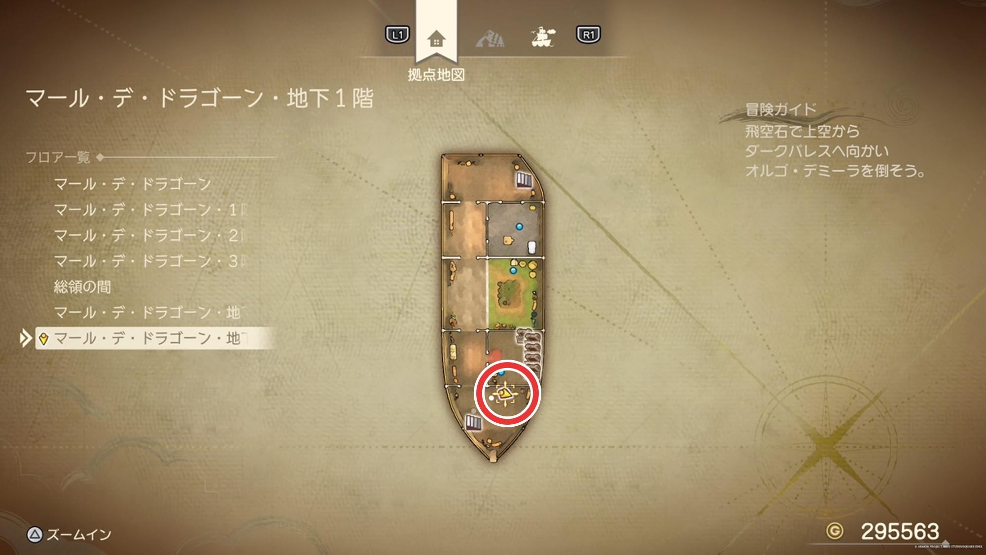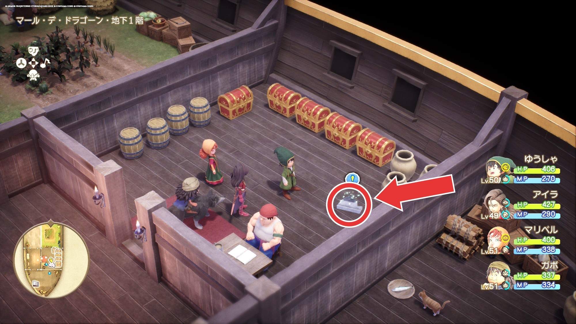 マールデドラゴーンに移動したら、地下1階は南側の階段を上りましょう。