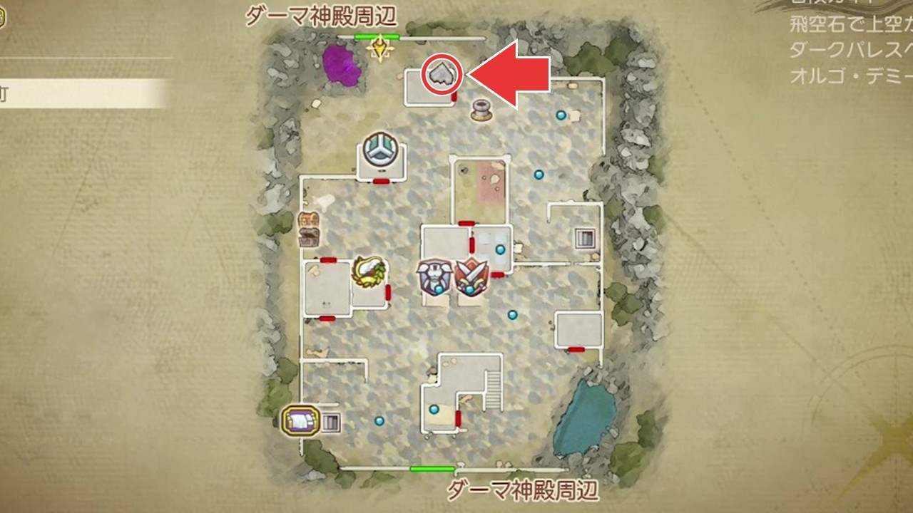 拡大する過去のダーマ周辺にあるふきだまりの町に行き、北にある貸し部屋でふしぎな石版銀を拾いましょう。