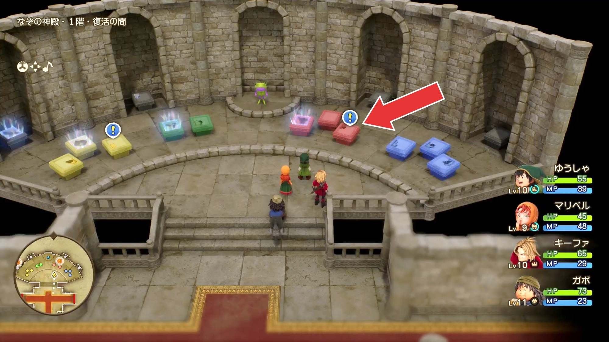 なぞの神殿で黄色の石版台座を調べる