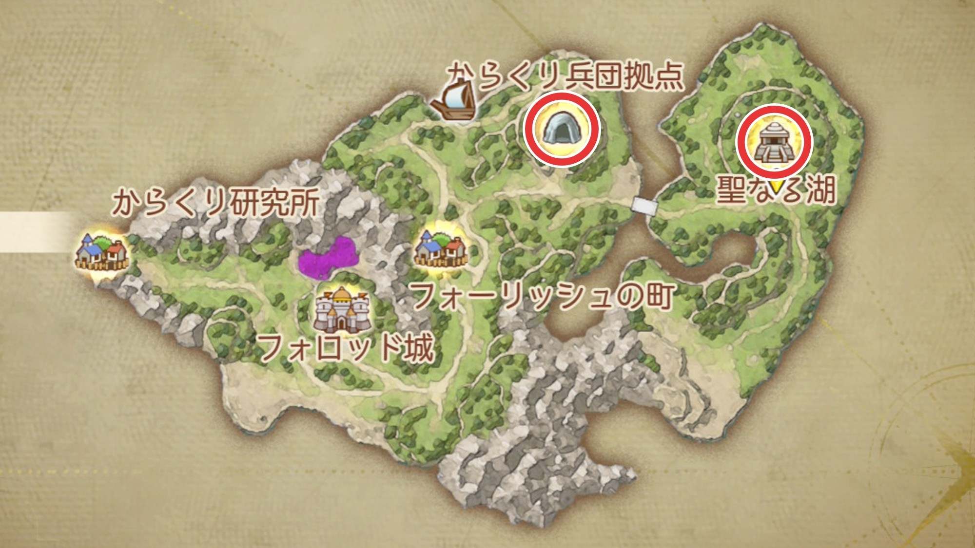 からくり兵団拠点と聖なる湖もあわせて回収