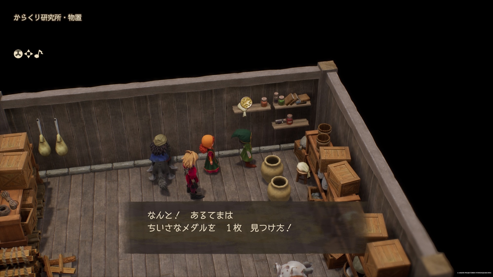 拡大するからくり研究所を離れる前に、物置のつぼから小さなメダルも回収するのがおすすめです。
