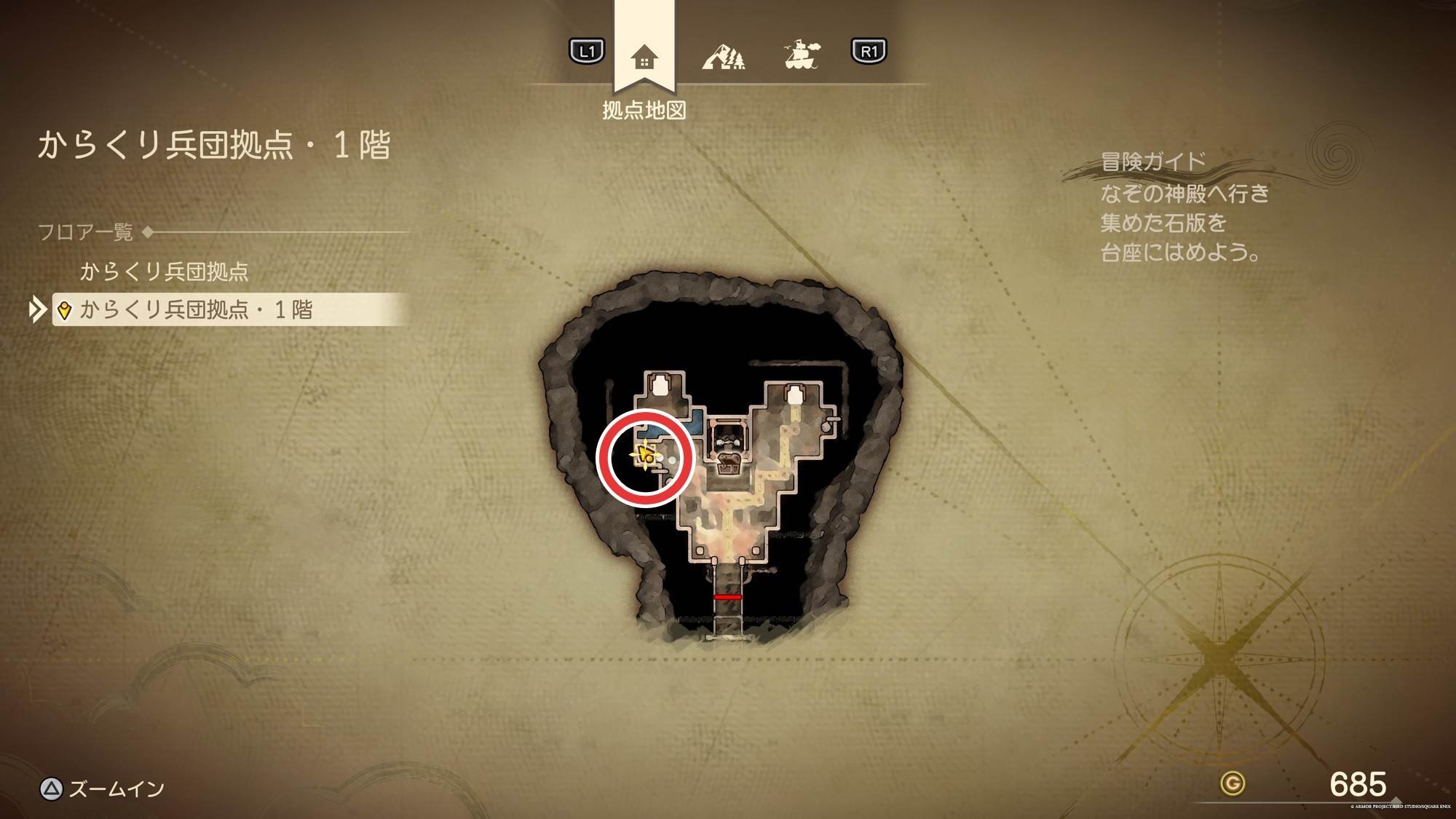 - 拠点の中に入ったら1階は右上の昇降機に乗る
