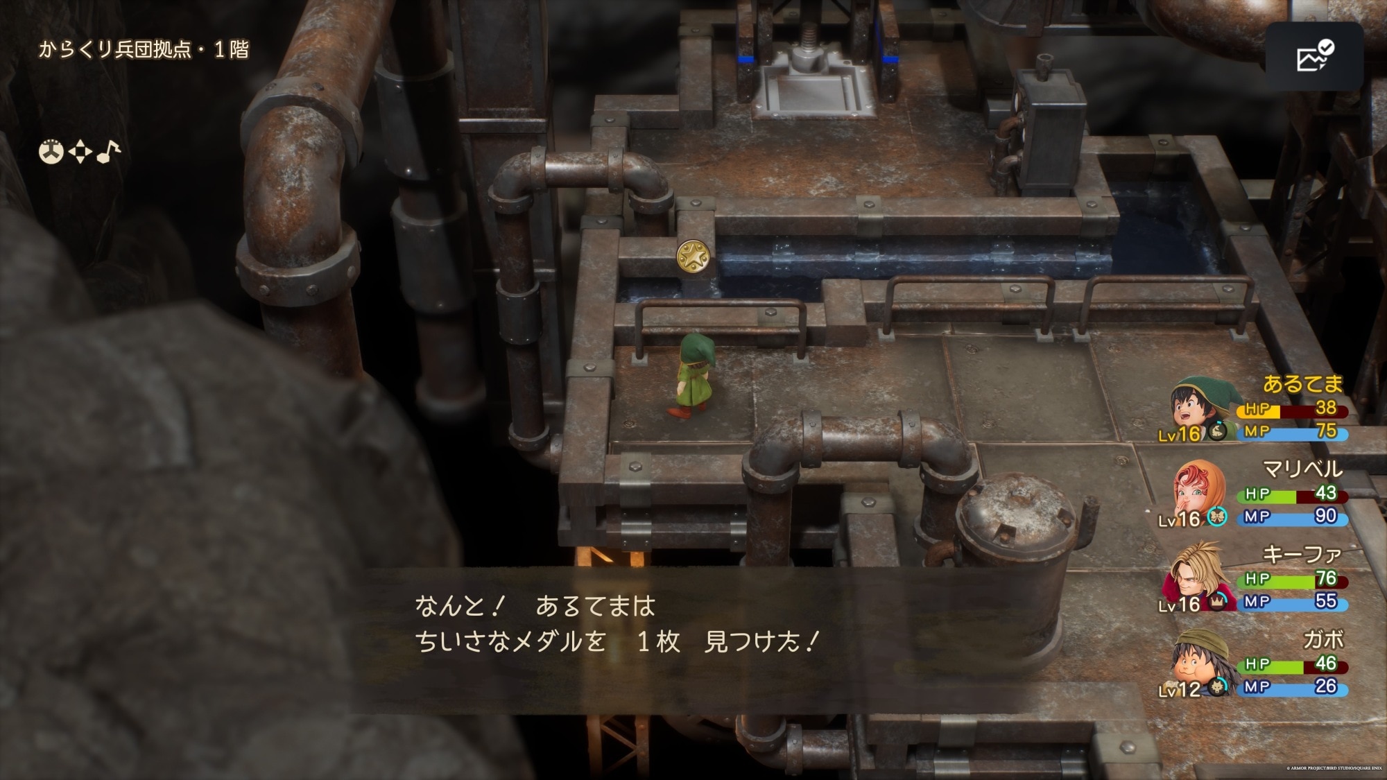 拡大する寄り道にはなりますが、現代のフォロッドを離れる前に、からくり兵団拠点と聖なる湖も小さなメダルを回収するのがおすすめです。