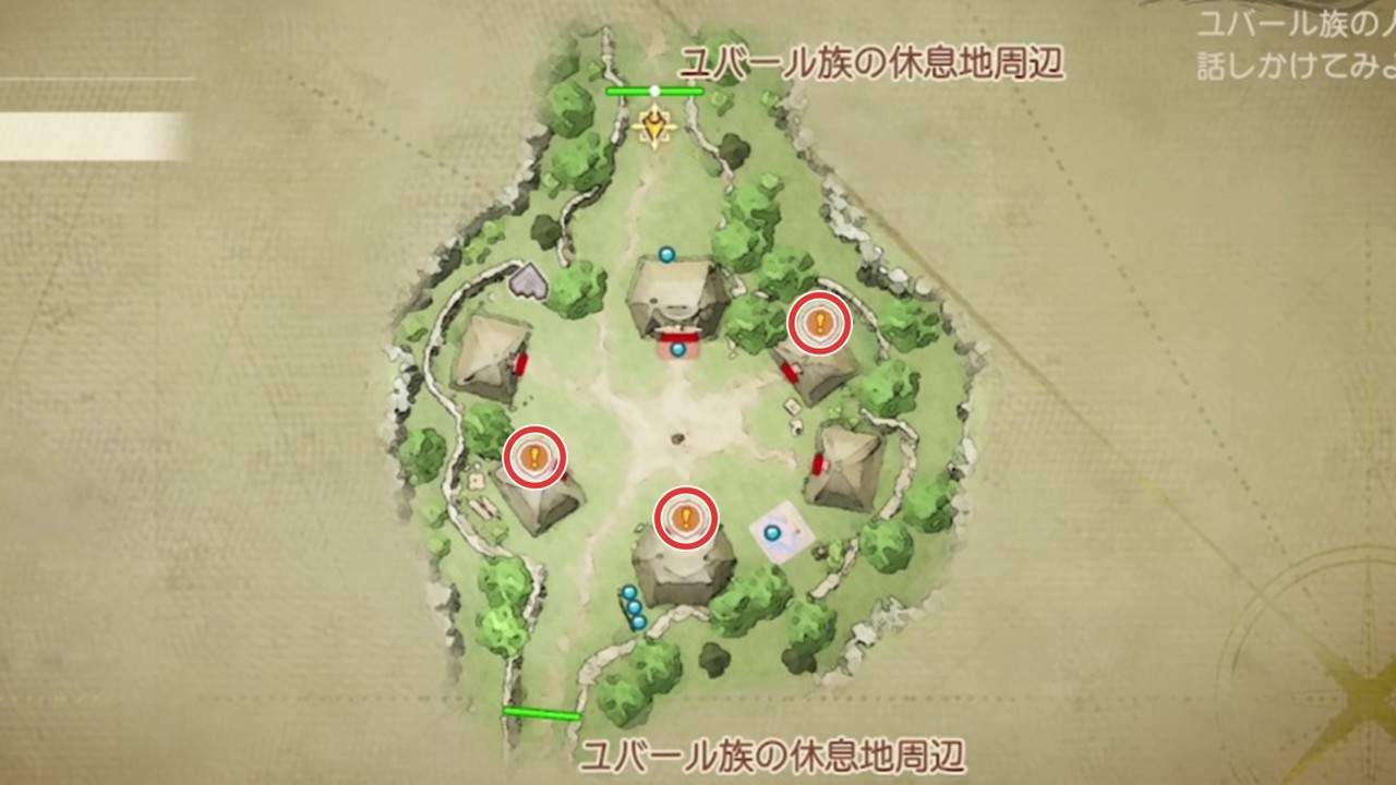 ユバールに着いたら、マップ南西にあるユバール族の休息地に向かいましょう。