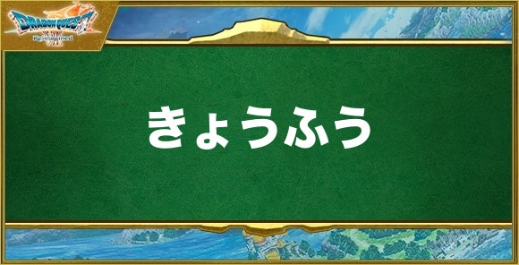 ドラクエ7リイマジンド(DQ7)のきょうふうの効果と習得できるキャラをご紹介。ドラゴンクエスト7リメイクのきょうふうの特技の消費MPや属性、効果範囲、キャラ(職業)の習得レベルを記載しています。