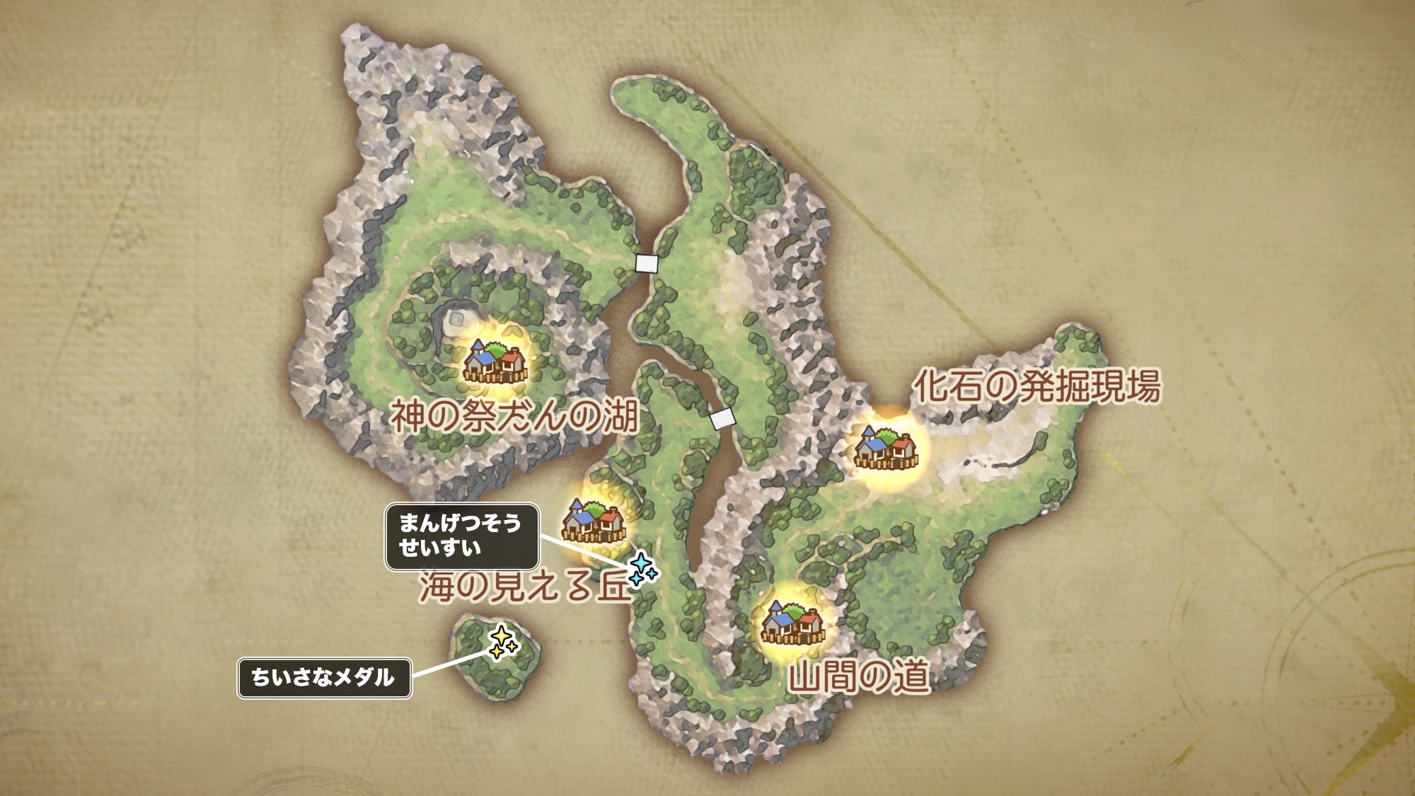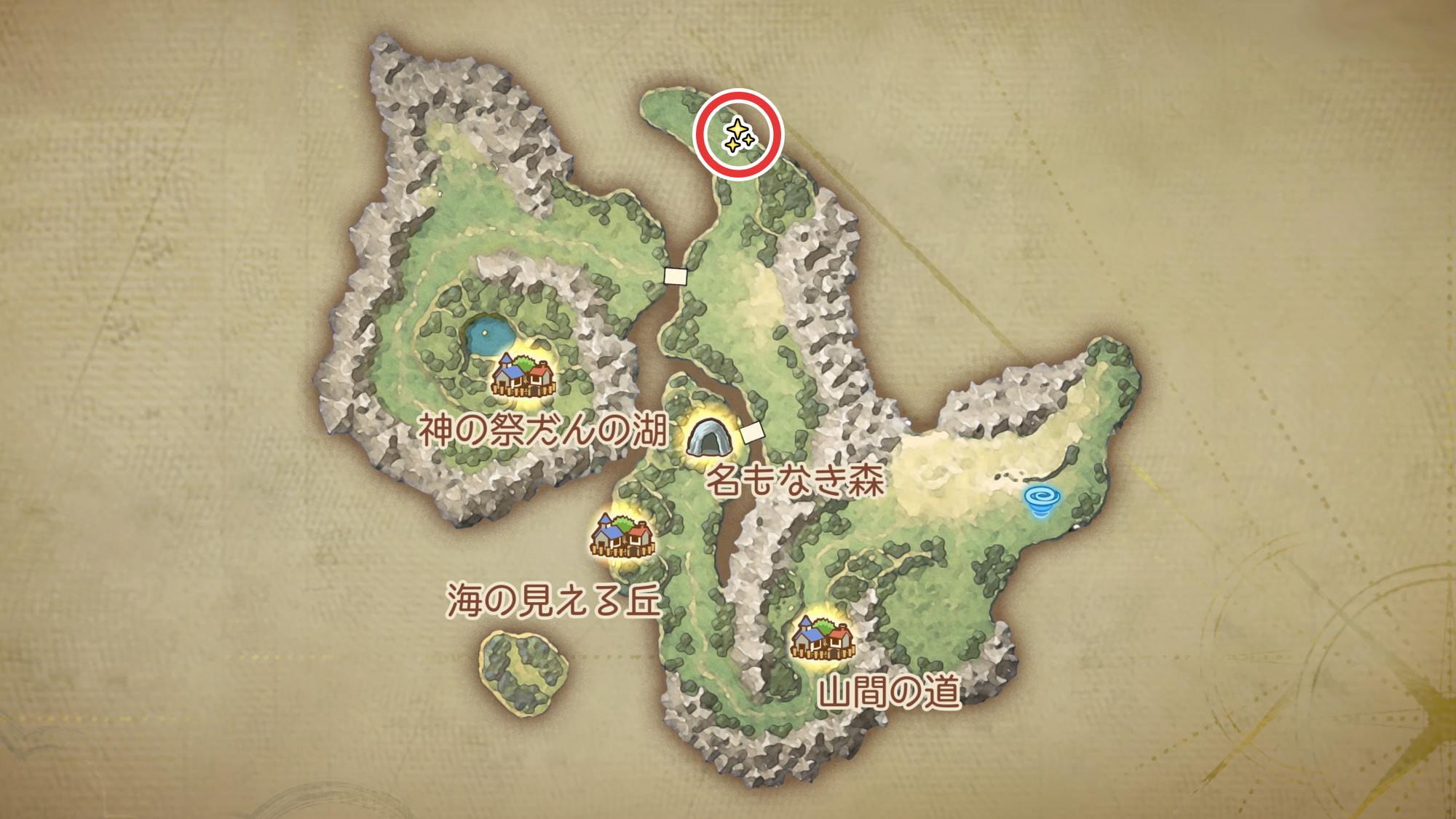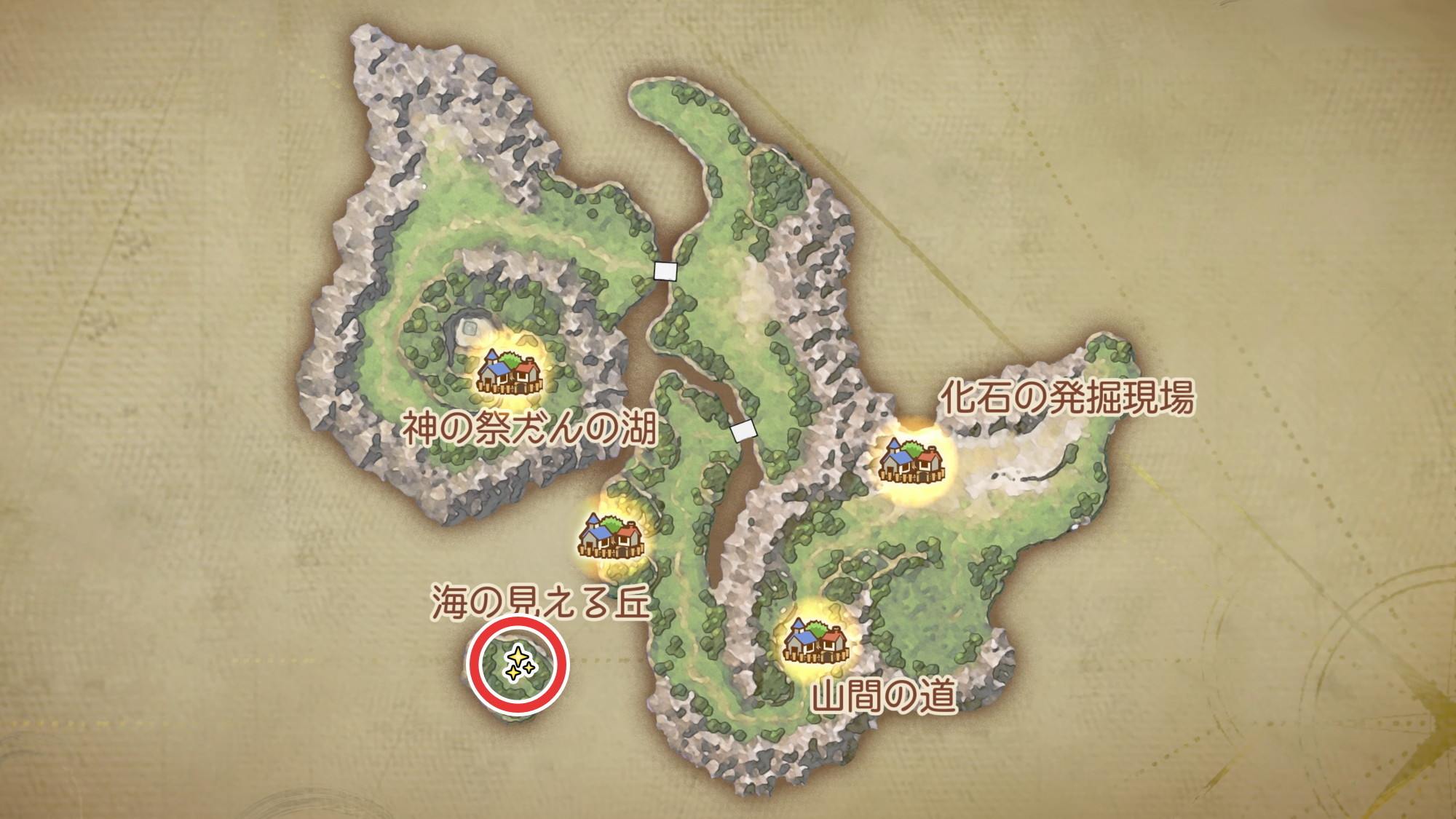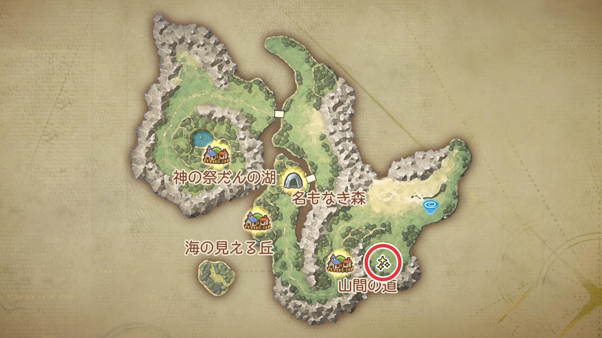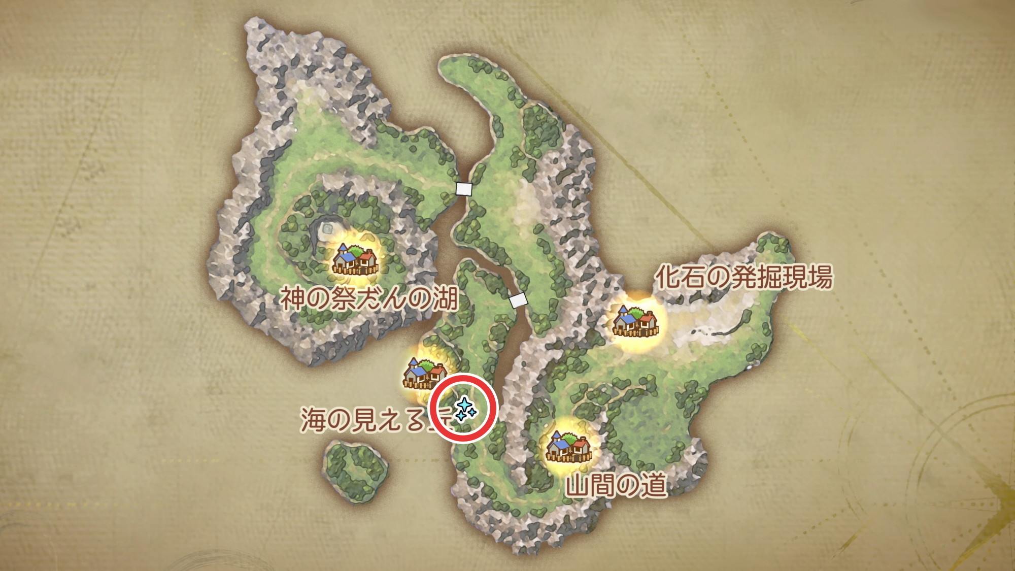 ユバール族の休息地周辺のマップとキラキラ