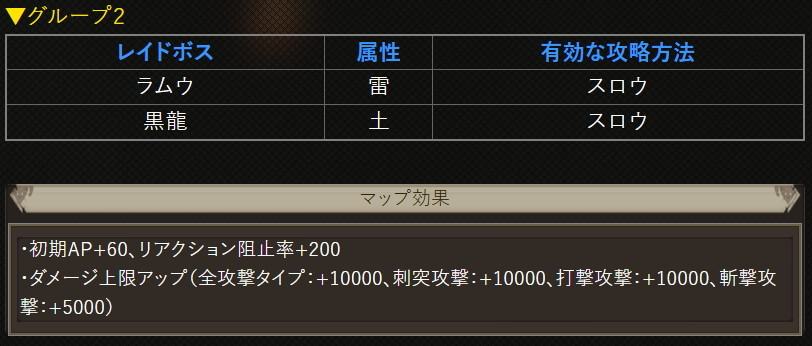 グループ2では「刺突」「打撃」「斬撃」の3タイプに対してダメージ上限が付与されます。全ての攻撃タイプ+10,000に加えて「刺突/打撃タイプは+10,000」「斬撃は+5,000」が追加されます。