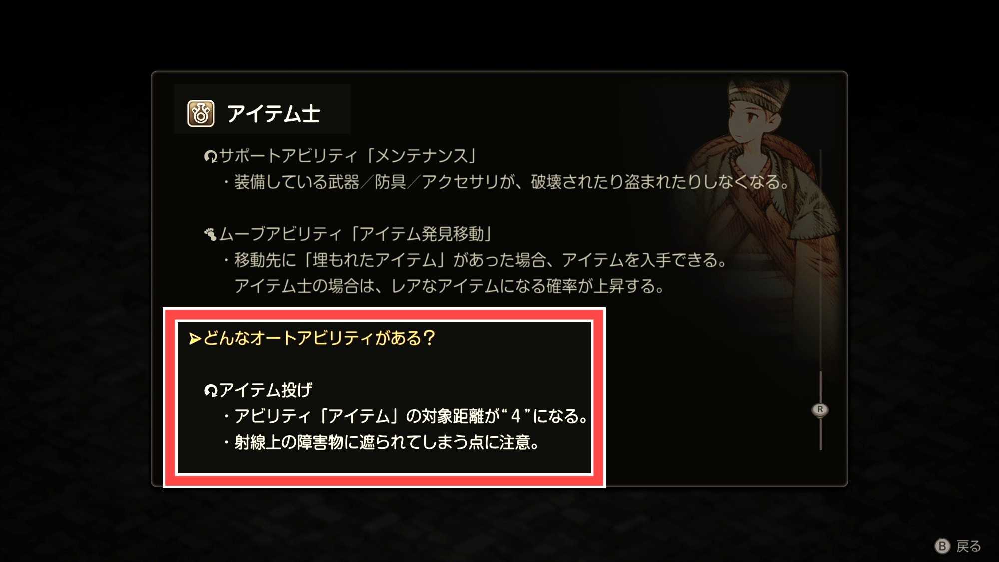 アイテムを投げたい場合は、ジョブ「アイテム士」を使用しましょう。アイテム士は、オートアビリティでアイテム投げを所持しており、4マス先までアイテムを投げられます。