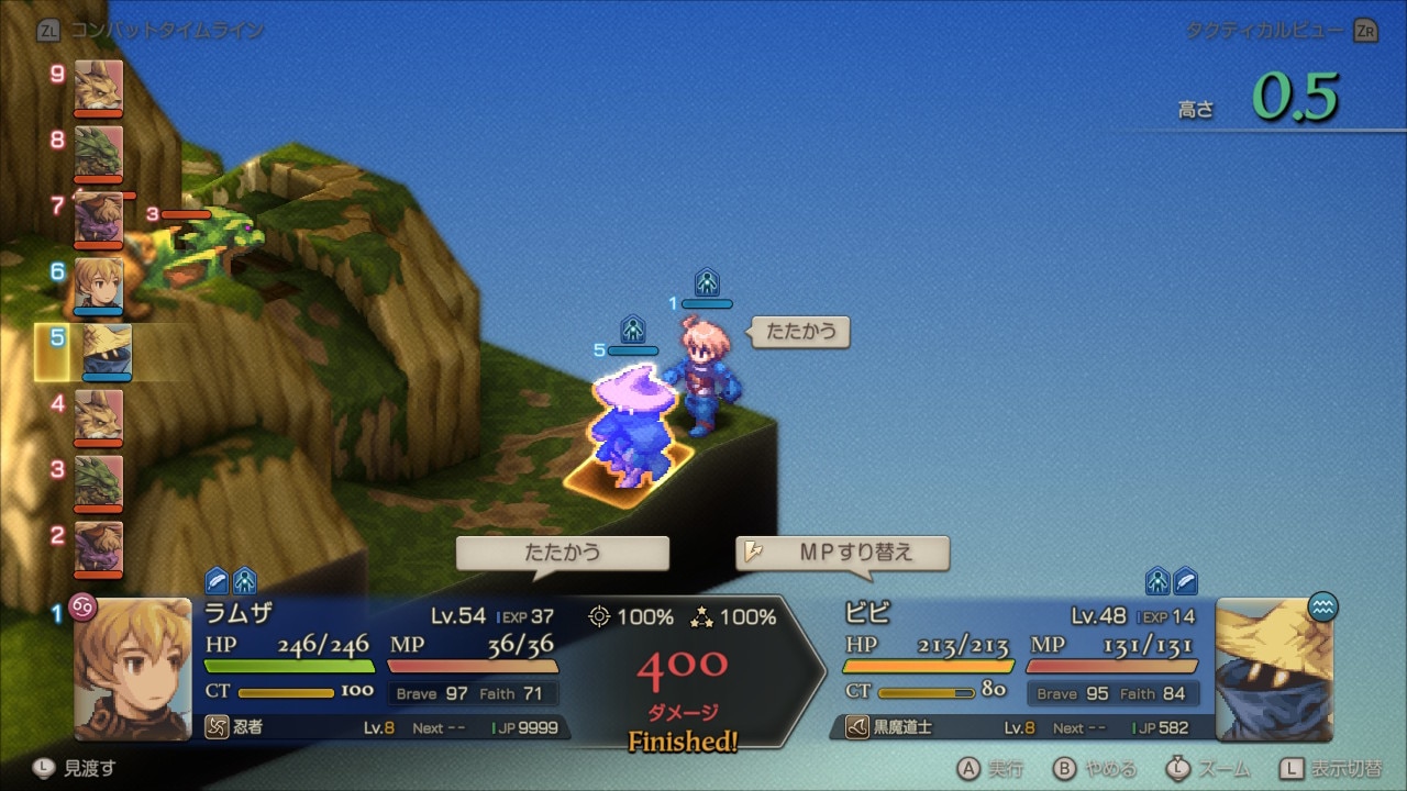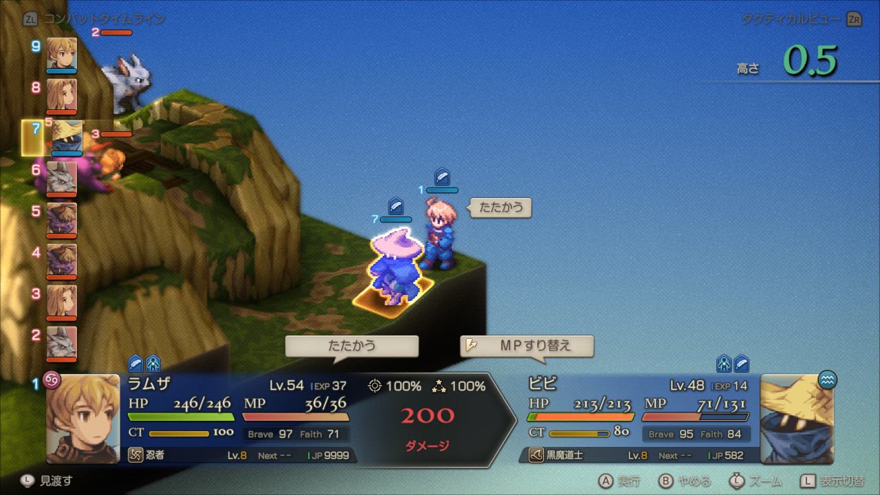 カジュアルは簡単な難易度で、与ダメージは大きく被ダメージは少ないのでサクサクゲームを進められます。戦闘よりもFFTのストーリーを楽しみたいという方におすすめの難易度です。