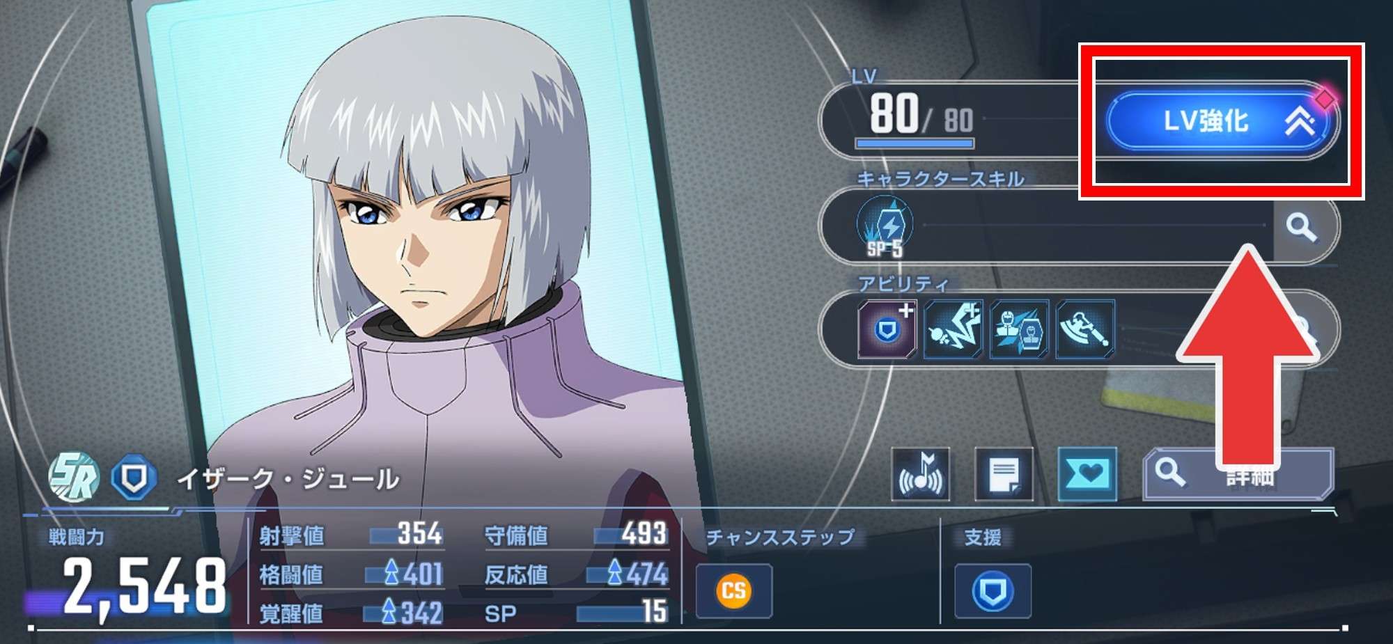 R以下のキャラクターは、レベル上限を100まで上げるとアビリティが解放されます。R以下のキャラは通常1個のアビリティしか持ちませんが、SP化することで最大4個のアビリティを持ちます。