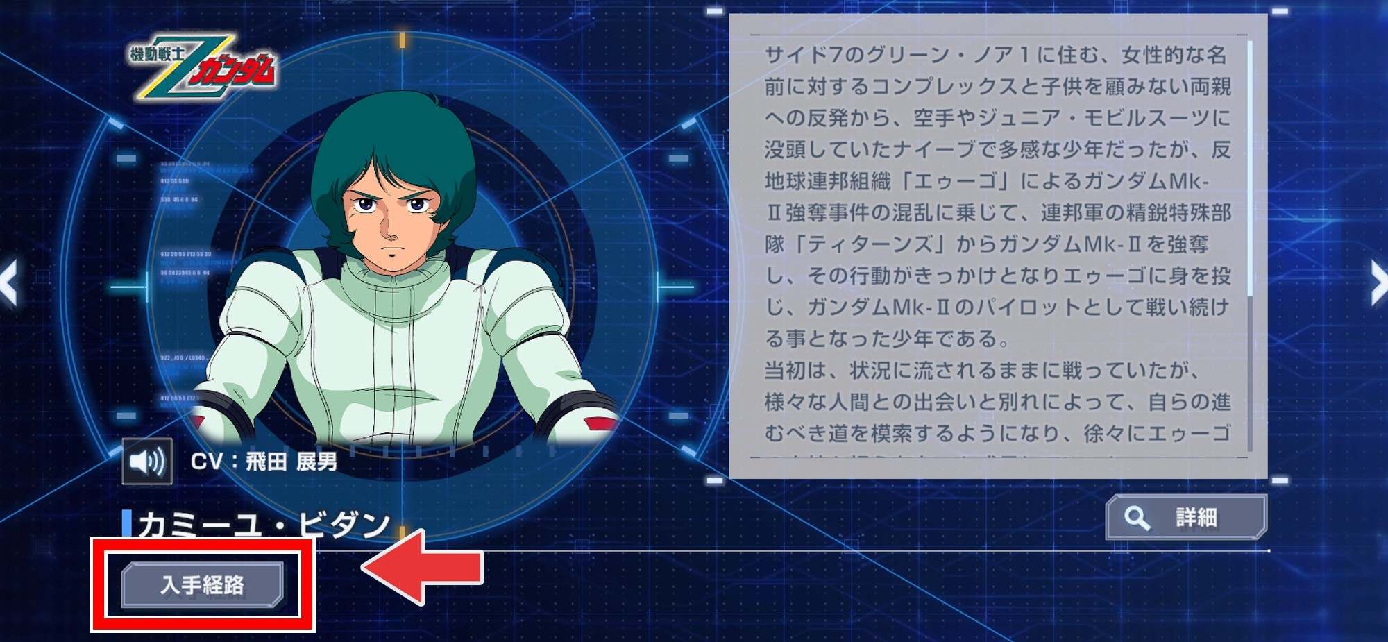 | ② | 拡大する画面左下の「入手経路」をタップ |