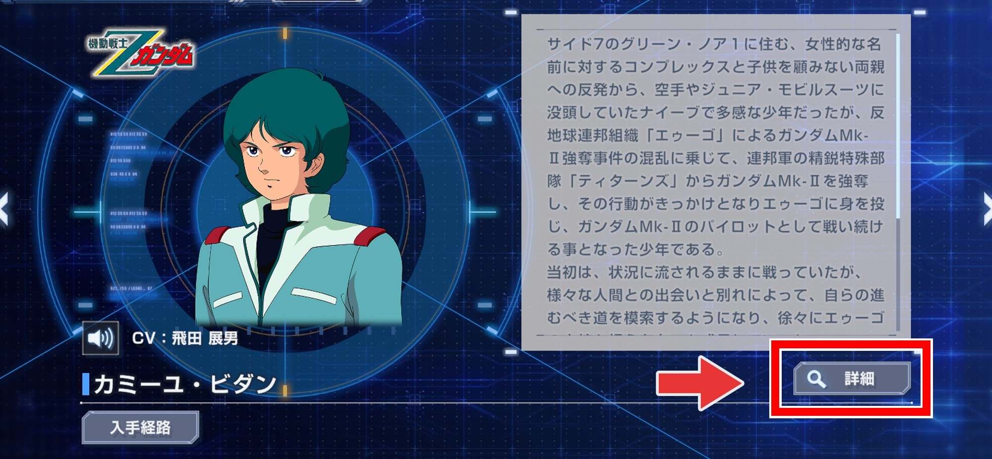 | ④ | 拡大するキャラ画像が変わっているのを確認し「詳細」をタップ |