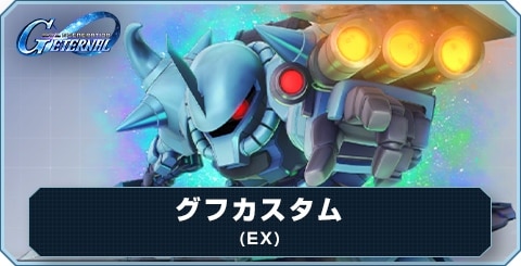 Gジェネエターナル(ジージェネエターナル)のグフカスタム(EX)の評価をご紹介。グフカスタム(EX)の武装や、対象のシリーズとタグに加えて、地形適性に武装やアビリティ、最大LVのステータスなども掲載しています。
