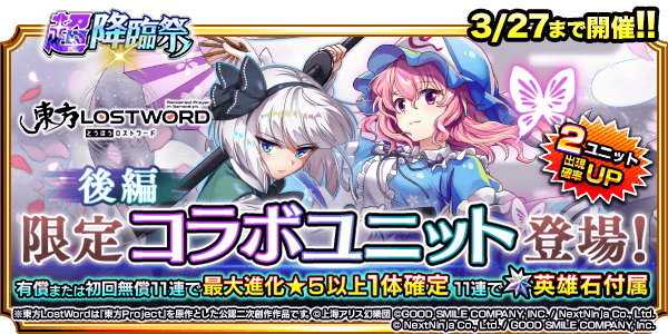 【グラサマ】東方LostWordコラボガチャシミュレーター後編|妖夢&幽々子
