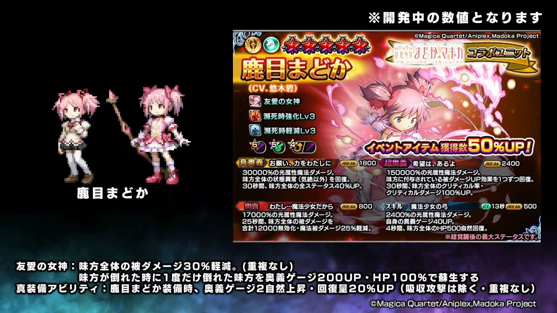 巴マミ・美樹さやか・佐倉杏子の性能は、後日発表されます。