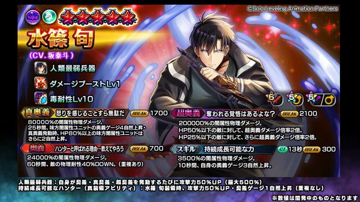 俺だけレベルアップな件コラボでは、コラボ限定キャラ4体がガチャに登場します。また、コラボ限定装備16種がガチャやイベントで入手可能です。