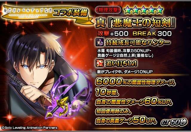 俺レベコラボキャラ・装備を編成すると、ギルドガイドブック上巻のドロップ数が増加します。効率的に周回をするならガチャを引いて、コラボキャラや装備を編成しましょう。