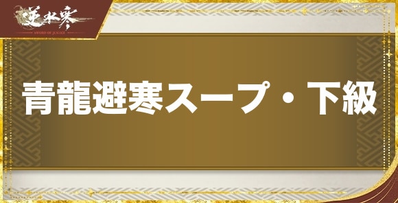 逆水寒の青龍避寒スープ・下級(せいりゅうひかんすーぷかきゅう)の効果と入手方法をご紹介。販売価格についても記載しています。