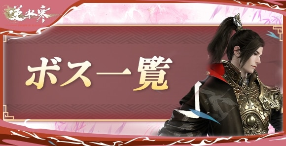 逆水寒のボス一覧をご紹介。ボス戦の推奨レベル、出現場所、チャートを記載しています。逆水寒のボス攻略の参考にしてください。