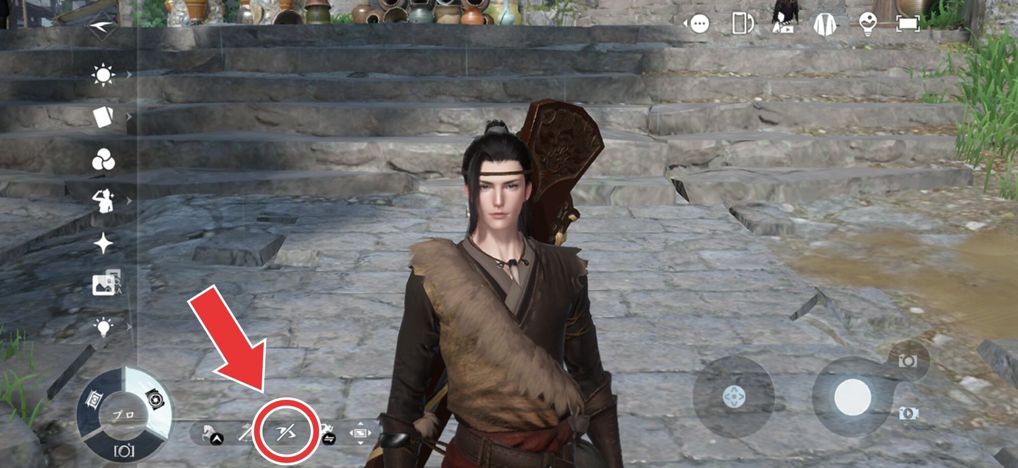 カメラを撮る時は、視線アイコンでカメラ目線に切り替えましょう。写真はカメラ目線で印象が大きく変わるため、凛々しい姿なら上目に、クールな感じなら斜め下に視線を落とすと雰囲気をより強調できます。