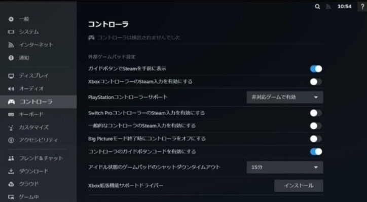 | 3 | 拡大する左側の「コントローラー」を選択後、使用するコントローラーを選び設定を行う |