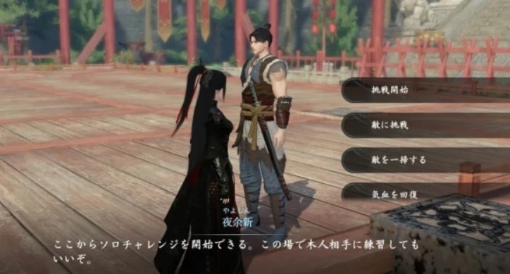 | 1 | 拡大する試練の演舞台内の右側にいる「夜余新」に話しかける |